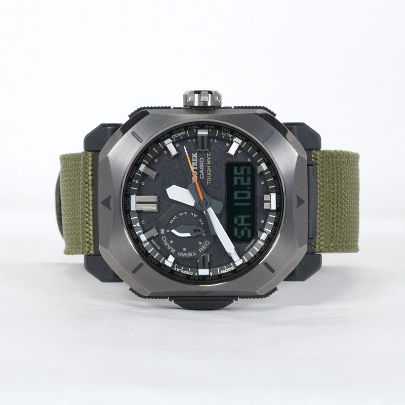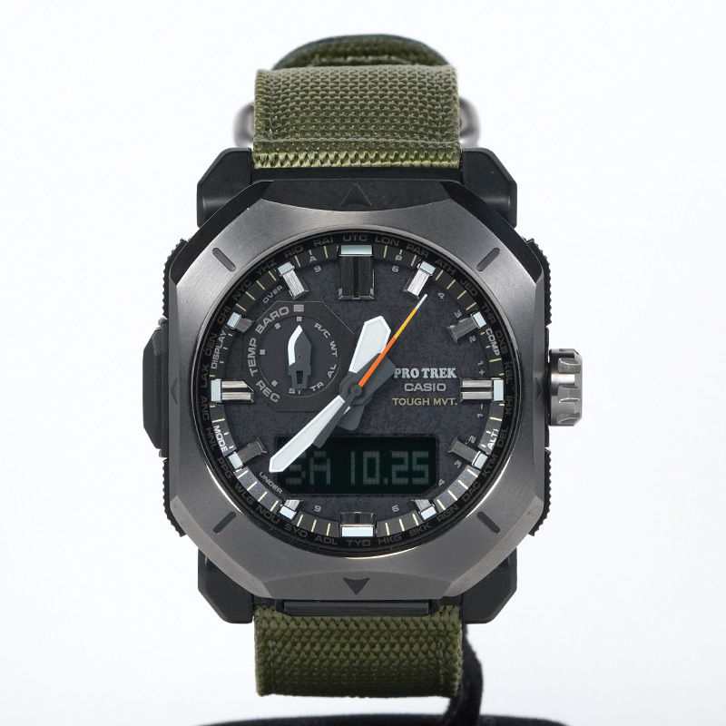 全体的に小傷が見られます。 風防に水滴のような粒々したものがあります。 針の長針に汚れがございます。 多機能の為、全ての機能の確認はできておりません。 日時は現時刻と合っている稼働品です。 | |||