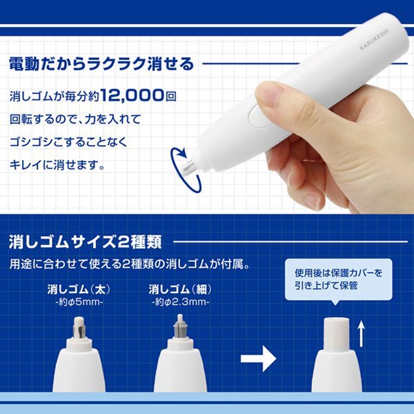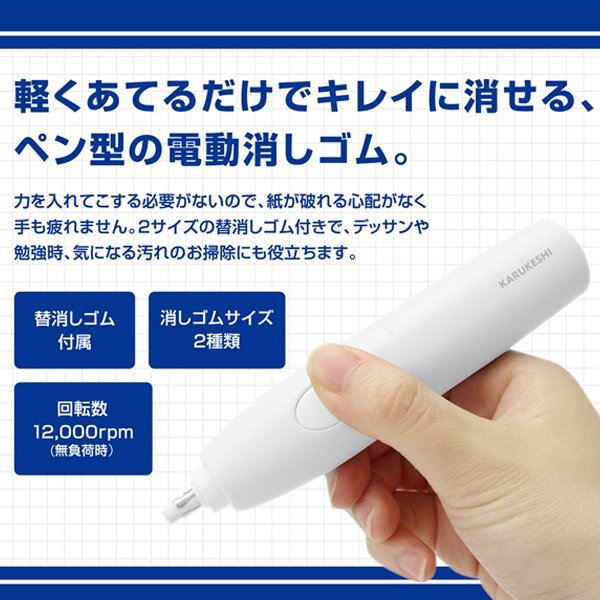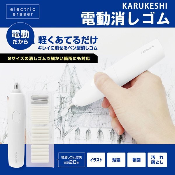 電動 消しゴム 回転 ペン型 楽々消しゴム よく消える 替え芯 20本付き コンパクト 学校 勉強 文房具 筆記用具 送料無料 3M◇ かる消し
