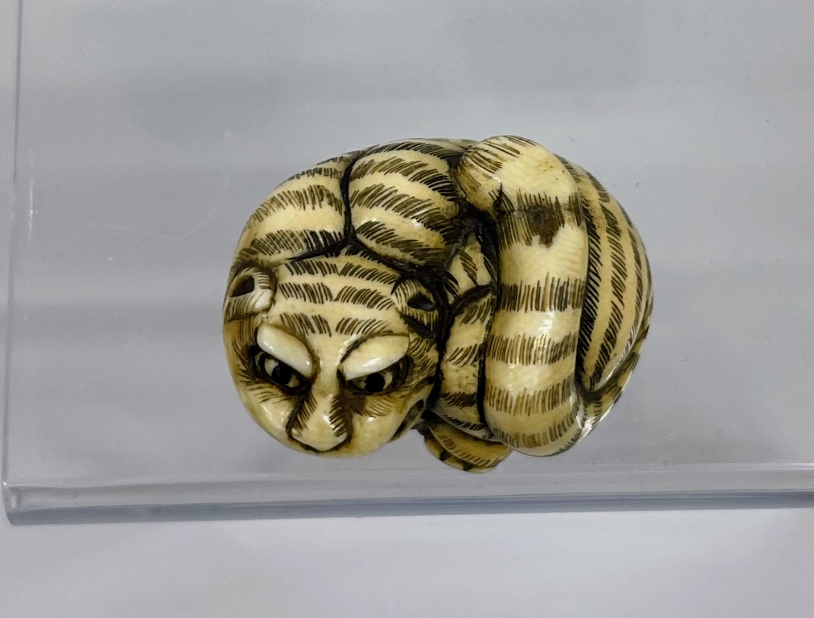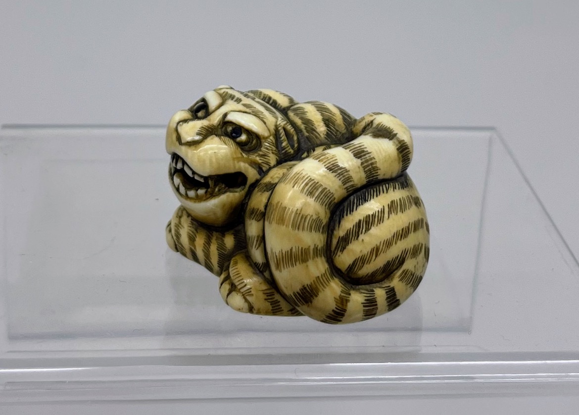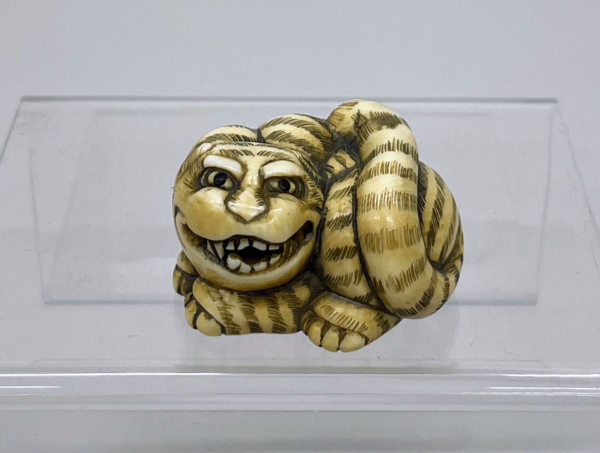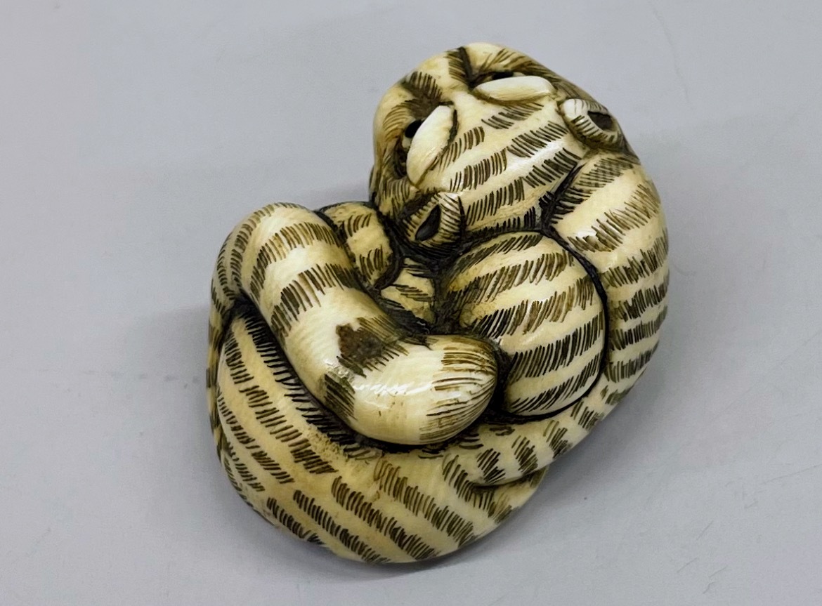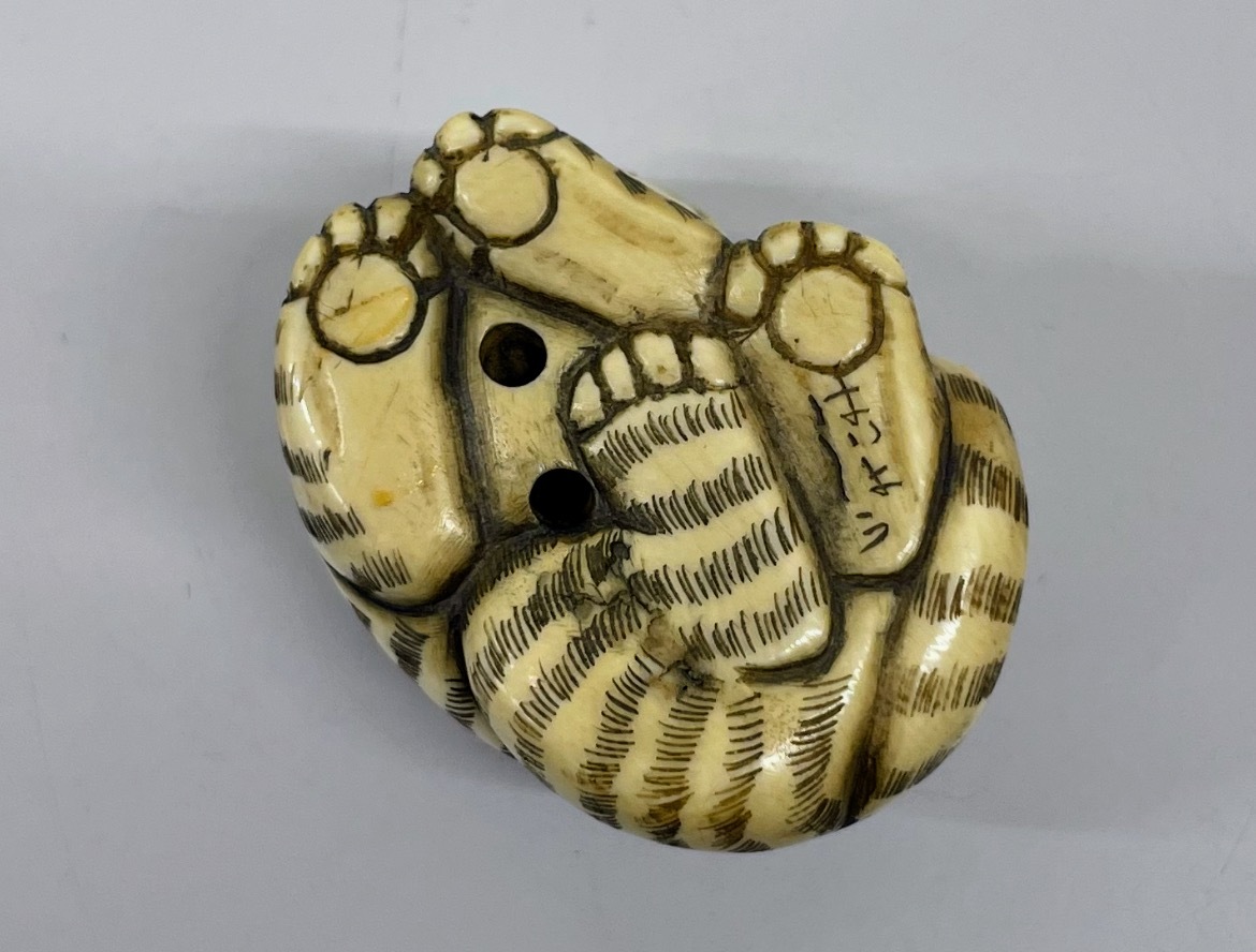 8 提げ物 虎 鯨 根付 鯨歯 / ウニコール / 抹香鯨 / 古美術 / 中国古玩 / 在銘