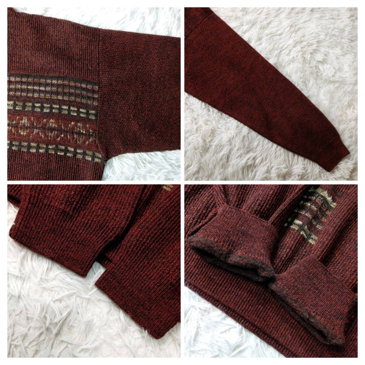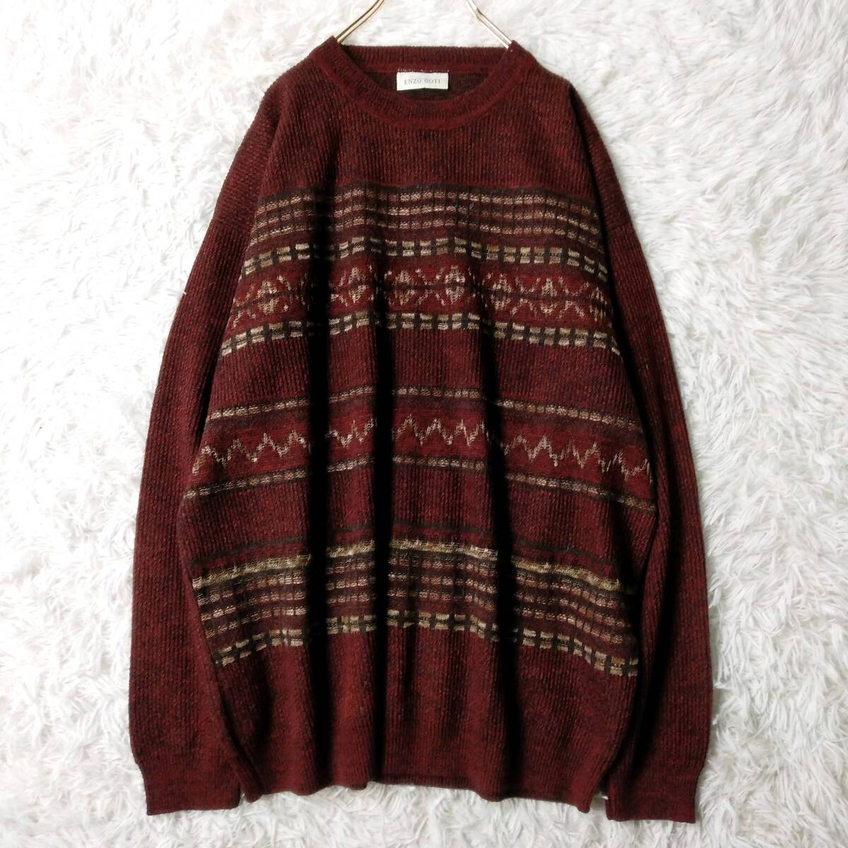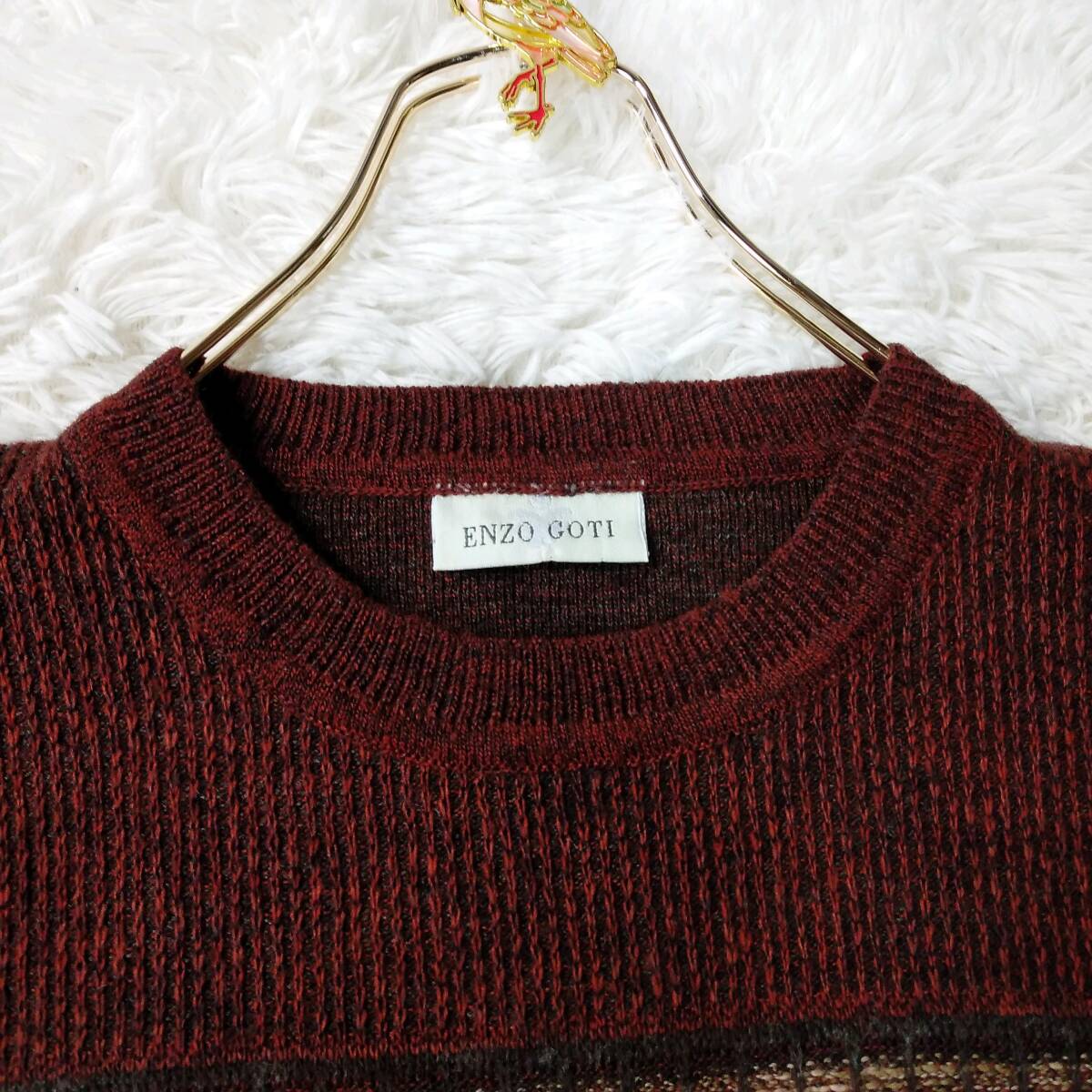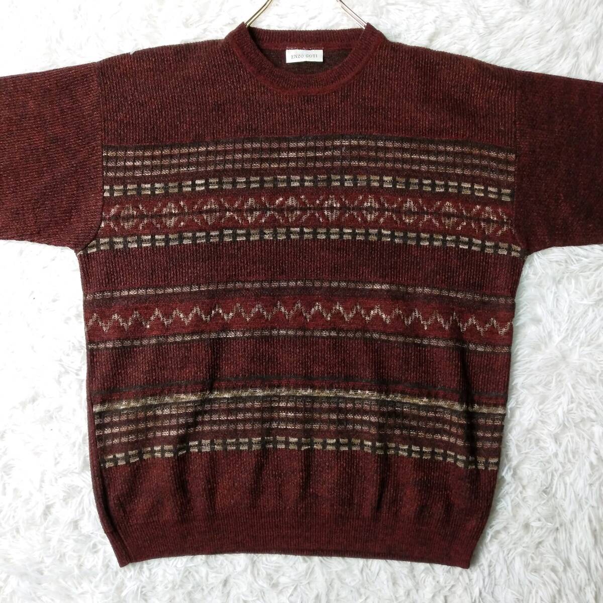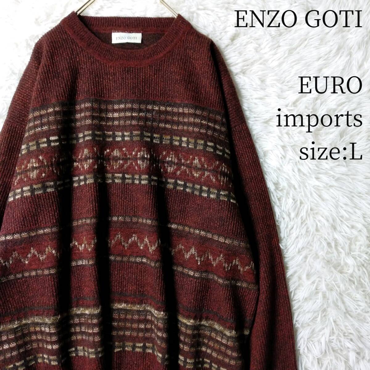 一点物EURO輸入★ENZO GOTI デザインニット 長袖セーター ボルドー 赤系 イタリア製 Lサイズ XLサイズ MAID IN ITALY 古着男子 下北系