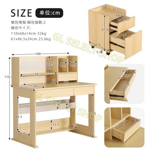 • 【大容量収納】たっぷりの収納スペースで、ペンなどの小物から本までスッキリ収納できます。仕切り棚があるので、本やノートなど分けて収納できます。 卓上の引き出しはよく使う小物などを収納するには最適です。デスク下には引き出し2杯付きです。スライドレール仕様のため、スムーズに開閉できる上、抜け落ちの心配もありません。デスク下にも収納スペースあり、足元のデッドスペースを有効活用できます。