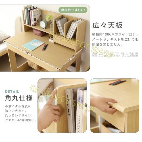 • 【広々天板】横幅約100cmのワイド設計、ノートやテキストを広げても窮屈を感じません。使いやすいサイズ感で、日常の勉強や作業もはかどります。