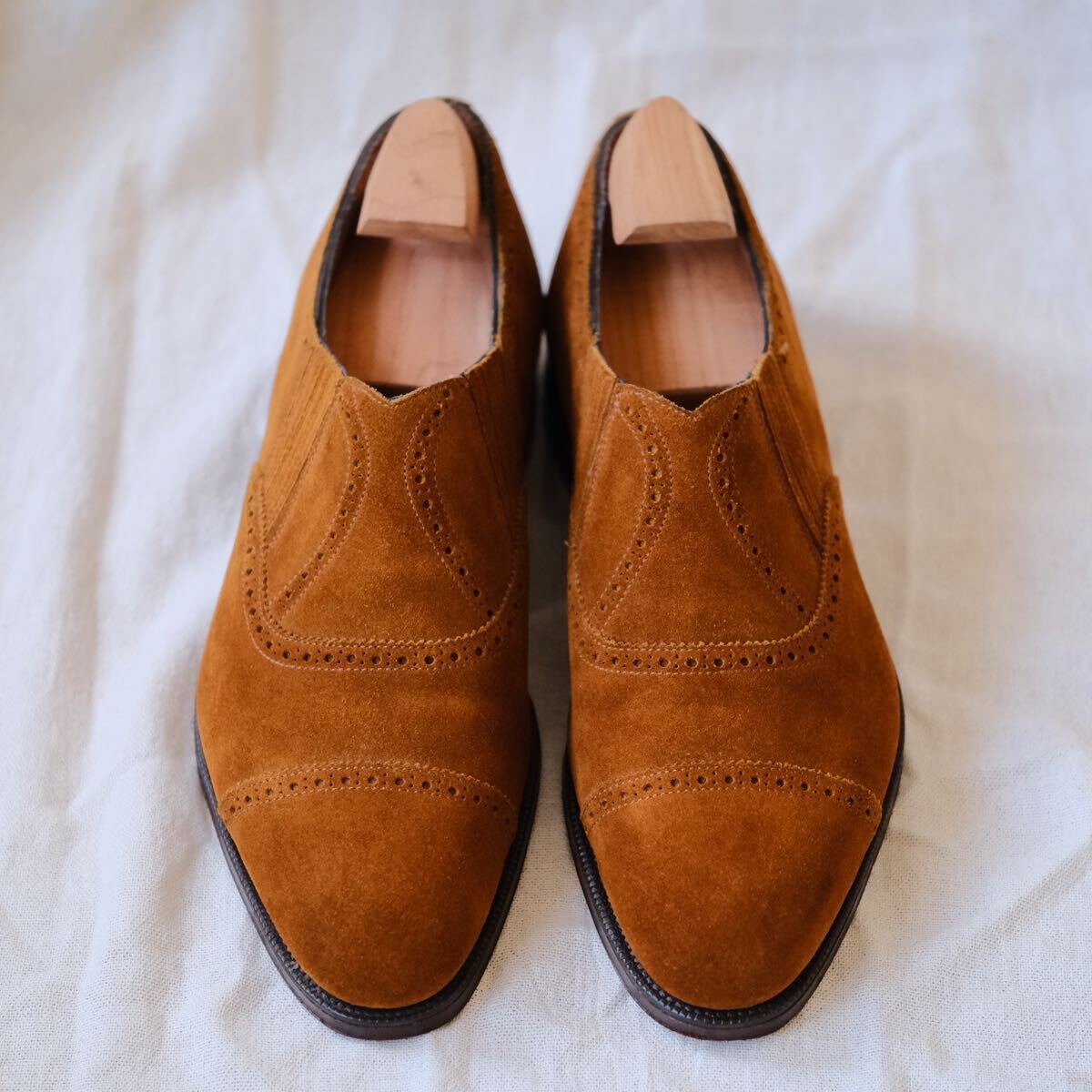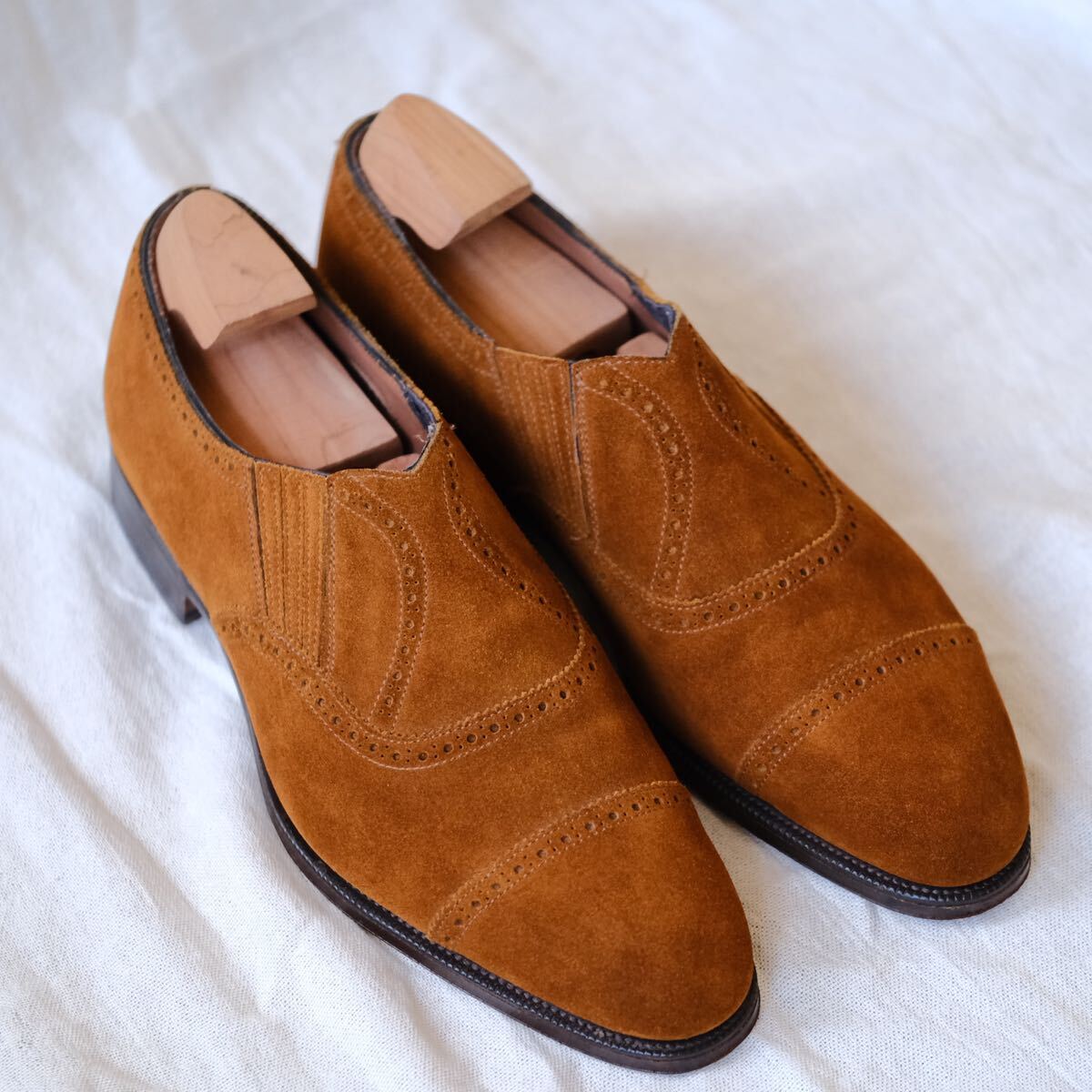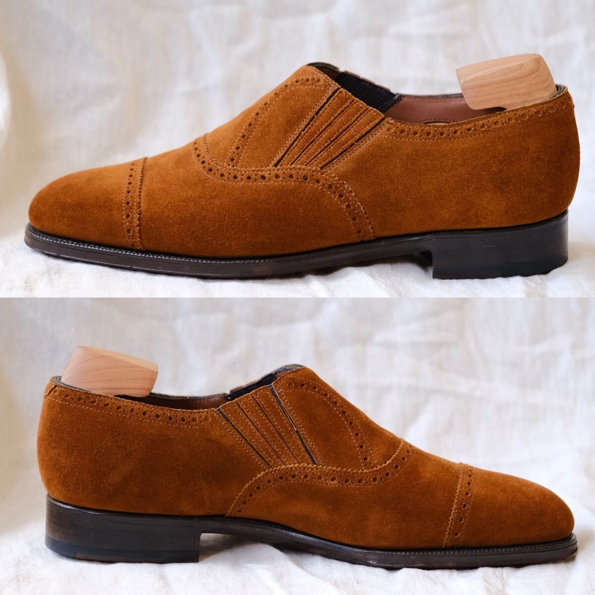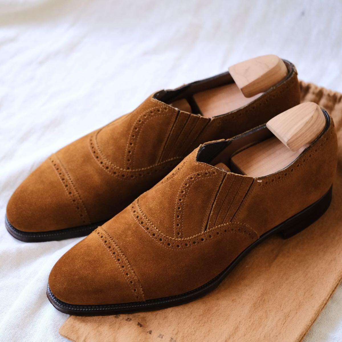 アッパー素材は勿論、ライニングや底材に使用されたオークバークレザーまで最高級の素材がふんだんに使用されています。細やかなステッチワークや出し縫いのピッチの正確さから職人のレベルの高さが窺い知る事ができ、ブランドが掲げる『でき得るかぎりの上質を求める』という信念を表しています。