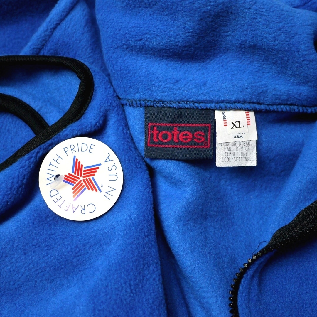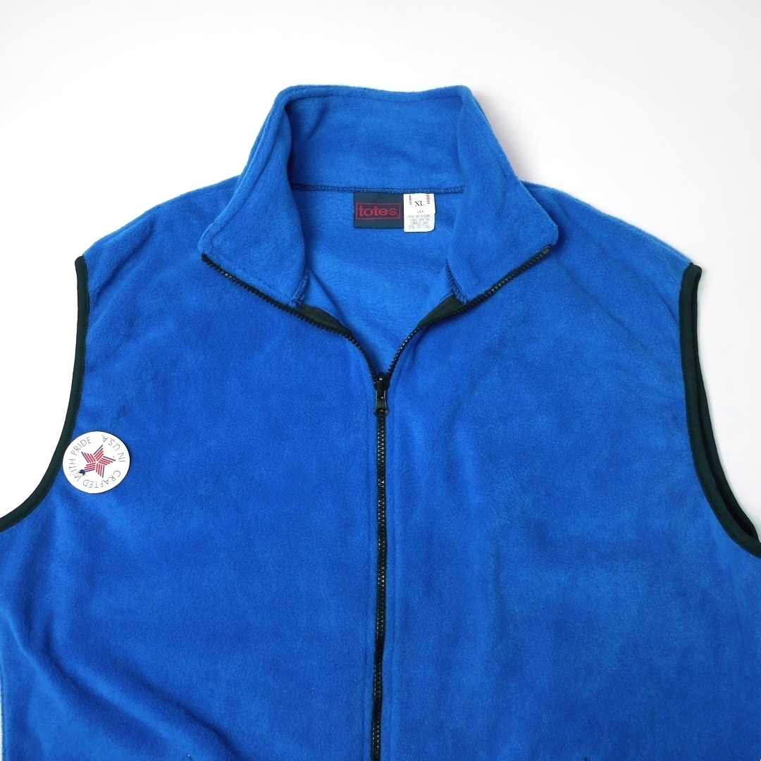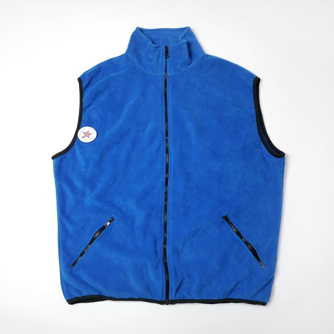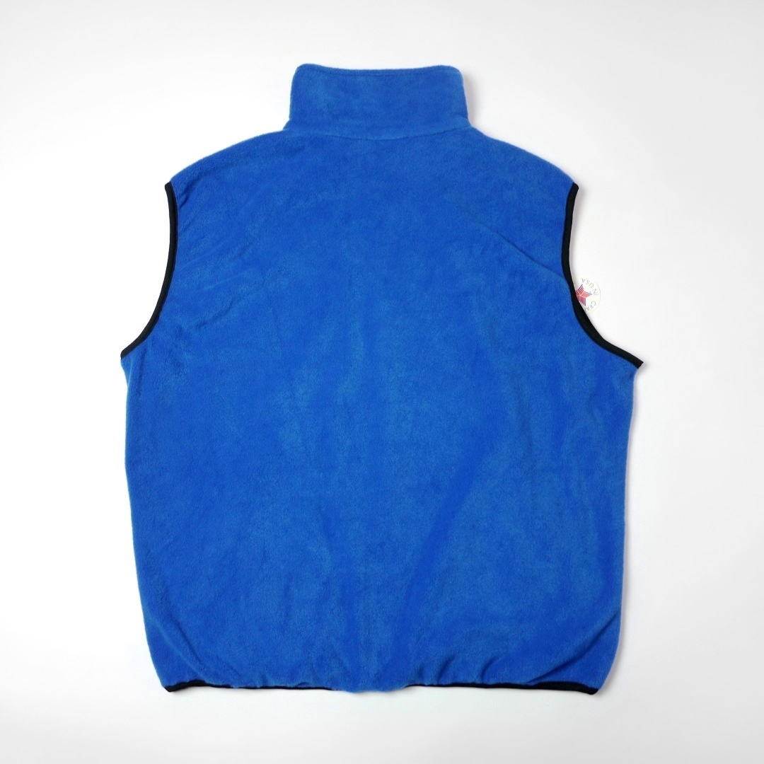 ■ブランド 90s、TOTES、MADE IN USA ■カラー ブルー×ブラック/青黒 ■素材 100%POLYESTER ■詳細 アメリカで購入したトーツのフリースベストです。 90年代ごろのアメリカ製で生地はふんわりとした着やすい生地感です。 創業100年の歴史を誇るアメリカブランドですが、つくりに関しては縫製クオリティやパーツ使いなどローカルブランドものに近いような?チープ感があります。 色鮮やかなブルーなのでブラックコーデの差色としてもオススメです。 レアなデッドです!! ■状態 デッドストックです。 ポケット裏側に部分的な縫製ミス(ステッチ抜け)のミシンリステッチあり。 ジッパーレーンやパイピングトリムにユーズドのような波打ちがややありますが元々のつくりです。 特に問題あるところはなく良好です。 ■サイズ 表記 XL (着用感XL~相当 *実寸参考下さい) 着丈前 68cm 着丈後 69cm 肩幅 54cm 身幅 67cm 裾幅 52cm伸縮性あり アームホール 25cm ■注意事項 状態は細かく確認しておりますが、傷や汚れの見落とし、実寸誤差、色味差異など生じる場合がございます。 不明な点がありましたら入札前にご質問下さい。 商品にあわせて洗濯やクリーニングメンテナンスを施しておりますが、ビンテージやアンティークなど中古品になりますので特性のご理解をお願いします。 |