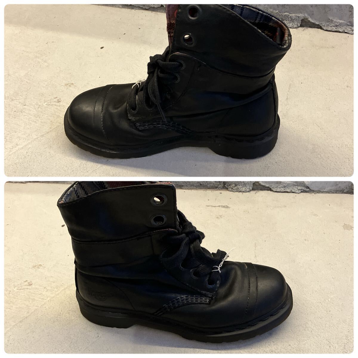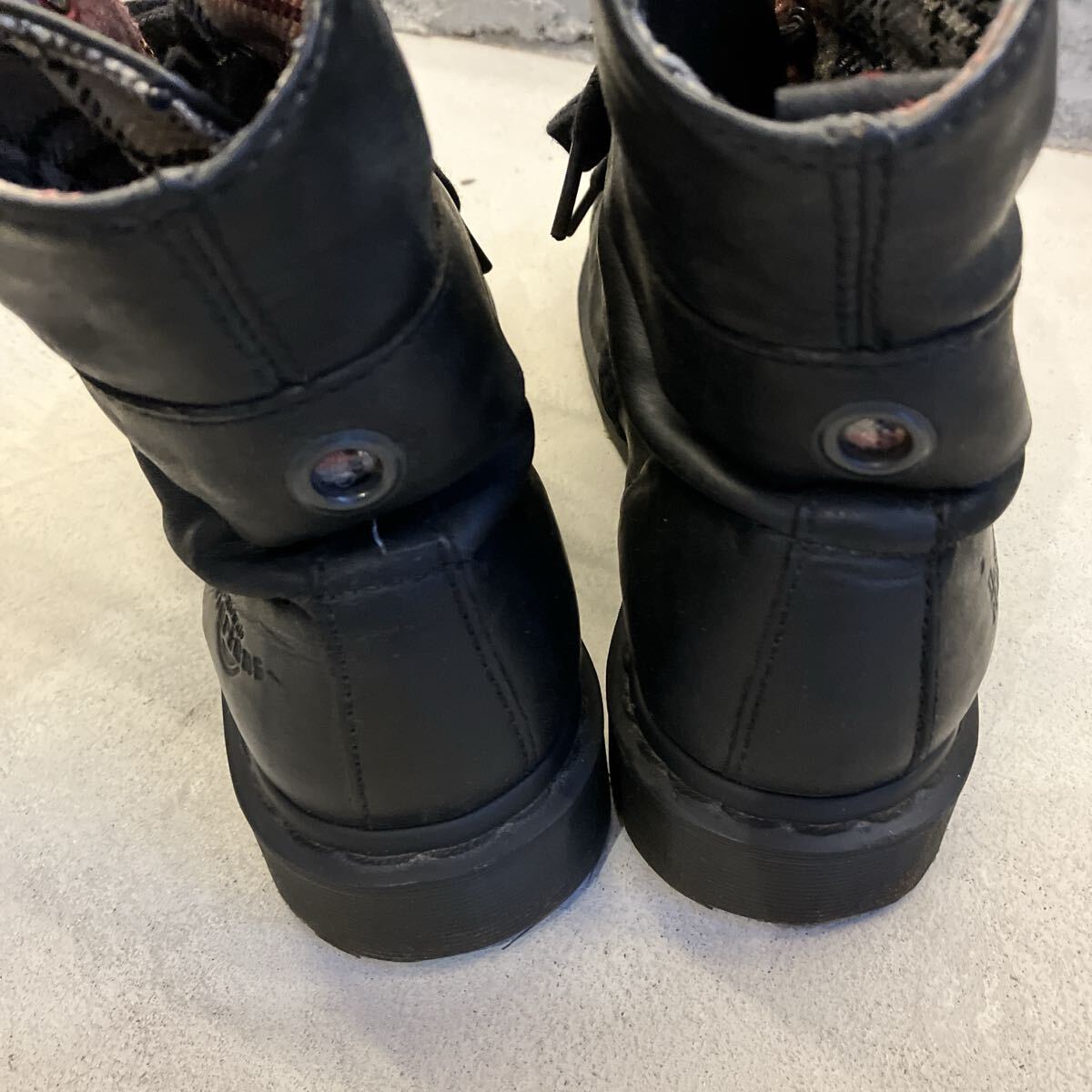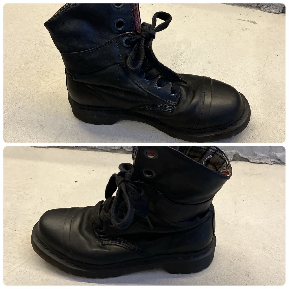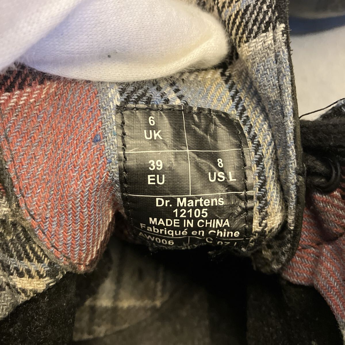 【Dr.Martens】ドクターマーチン UK6 / EU39 / US8 ブラック レザーブーツ 裏地チェック柄 一部使用感あり 1スタ(1円スタート)