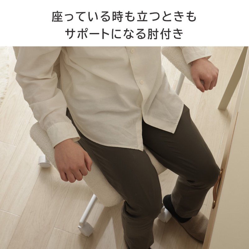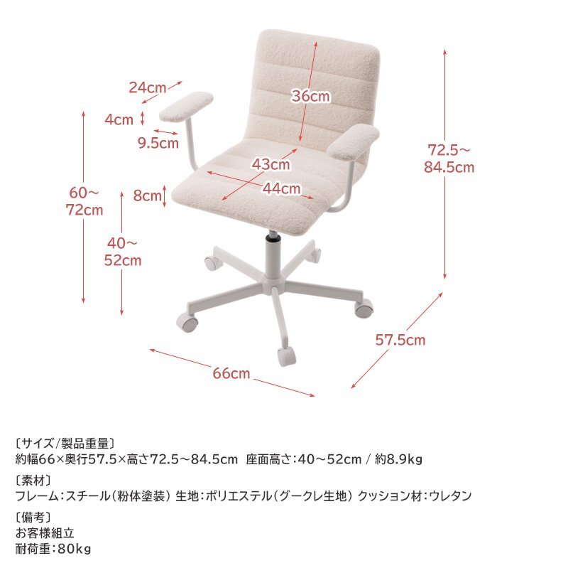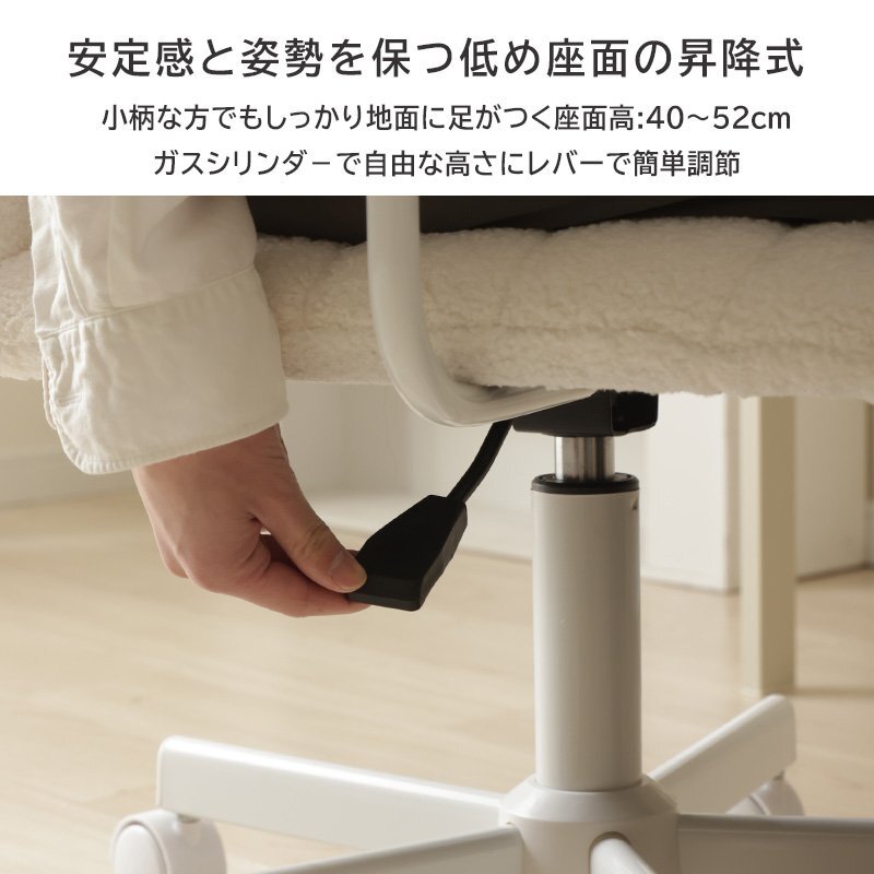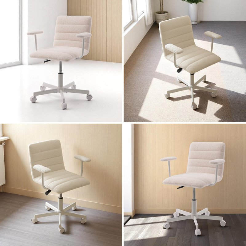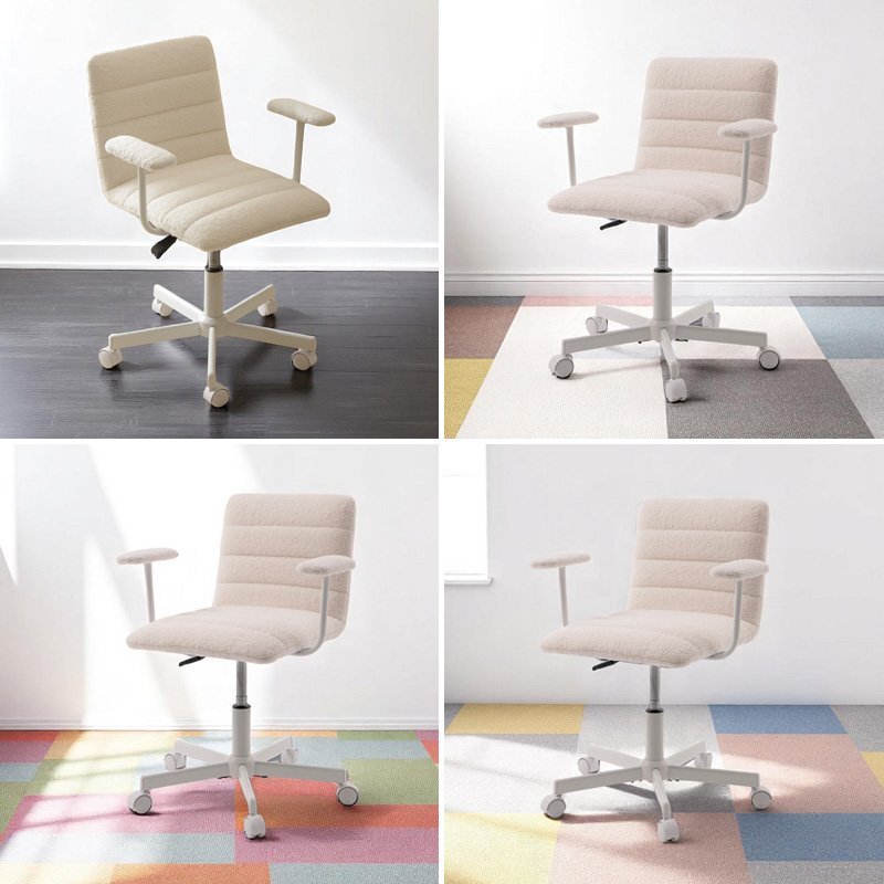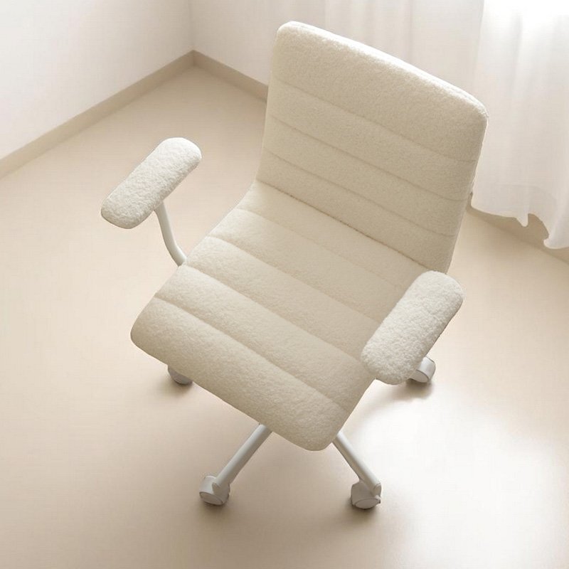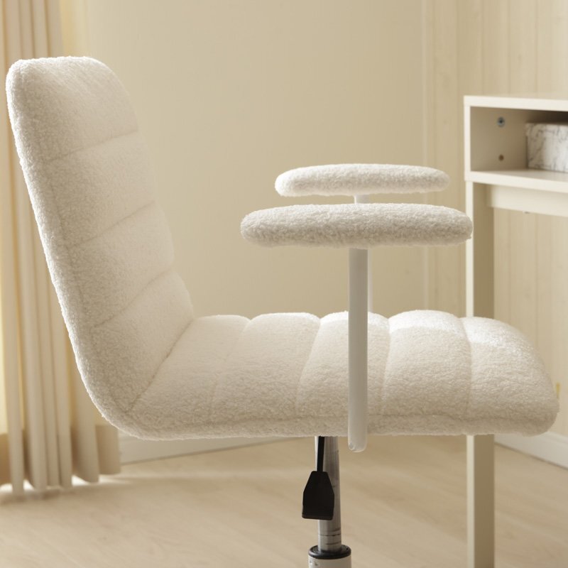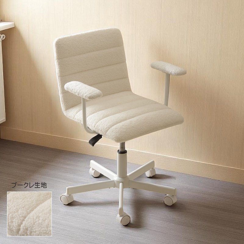 モコモコで触り心地の優しく、手触りのいいブークレ生地の肘付きデスクチェア