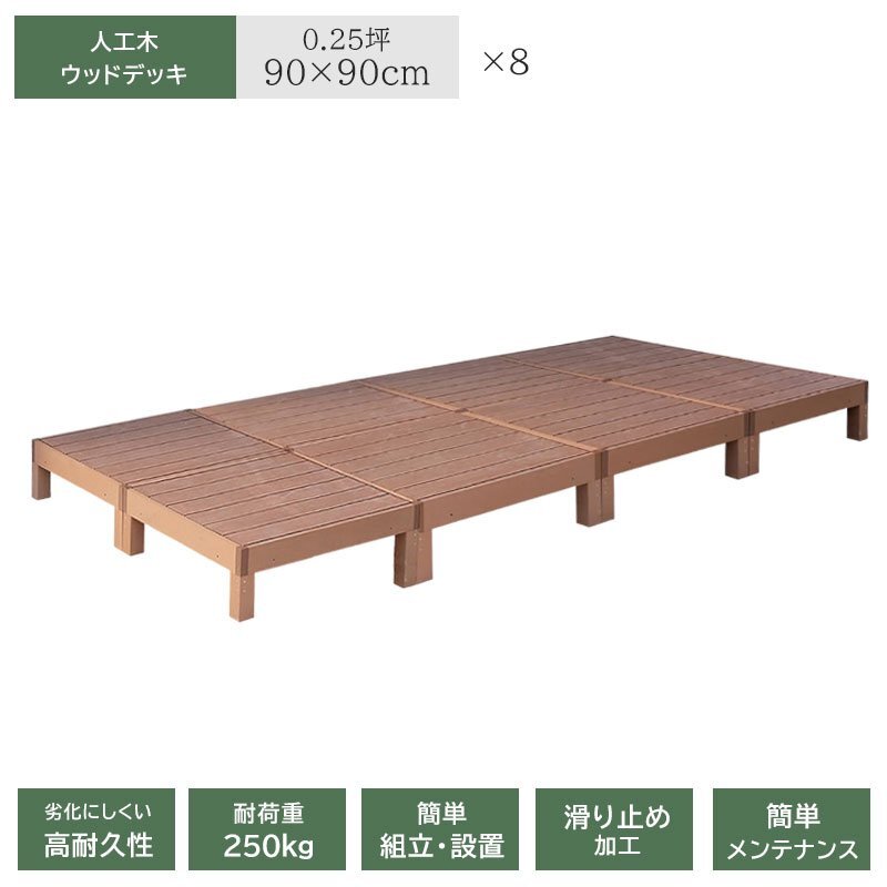 ウッドデッキ 8個セット 人工木 樹脂製 90×90cm 高さ28cm ライトブラウン 0.25坪 オープン 高耐久性 簡単組み立て
