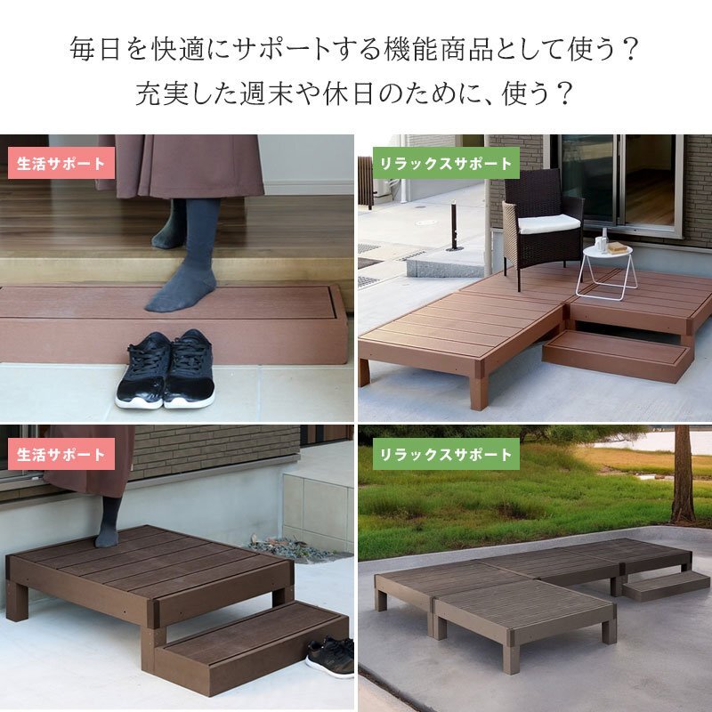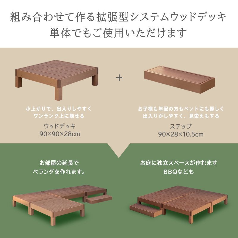 ウッドデッキとウッドステップは単体でもご用意しておりますので、必要に応じて追加できます。