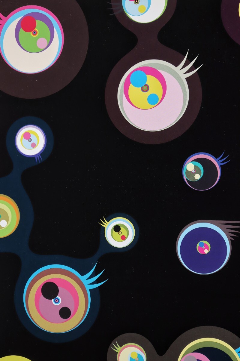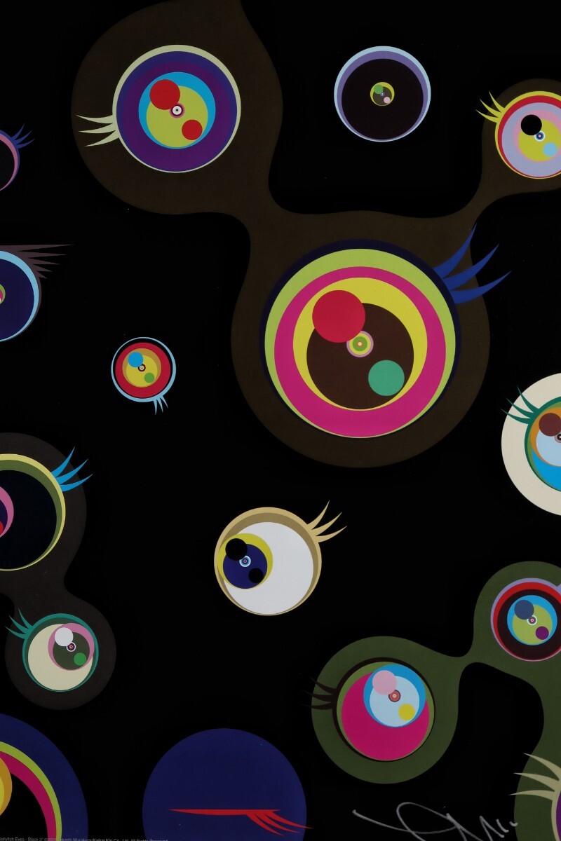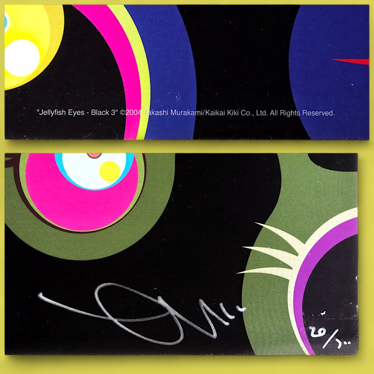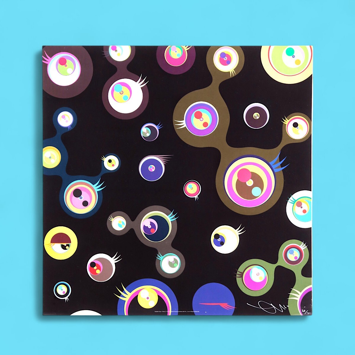 真作 村上隆 2011年オフセットリトグラフ「めめめのくらげ 黒3」画寸 50cm×50cm 黒を基調の画面にビビッドな色彩 Jellyfish Eyes 11678
