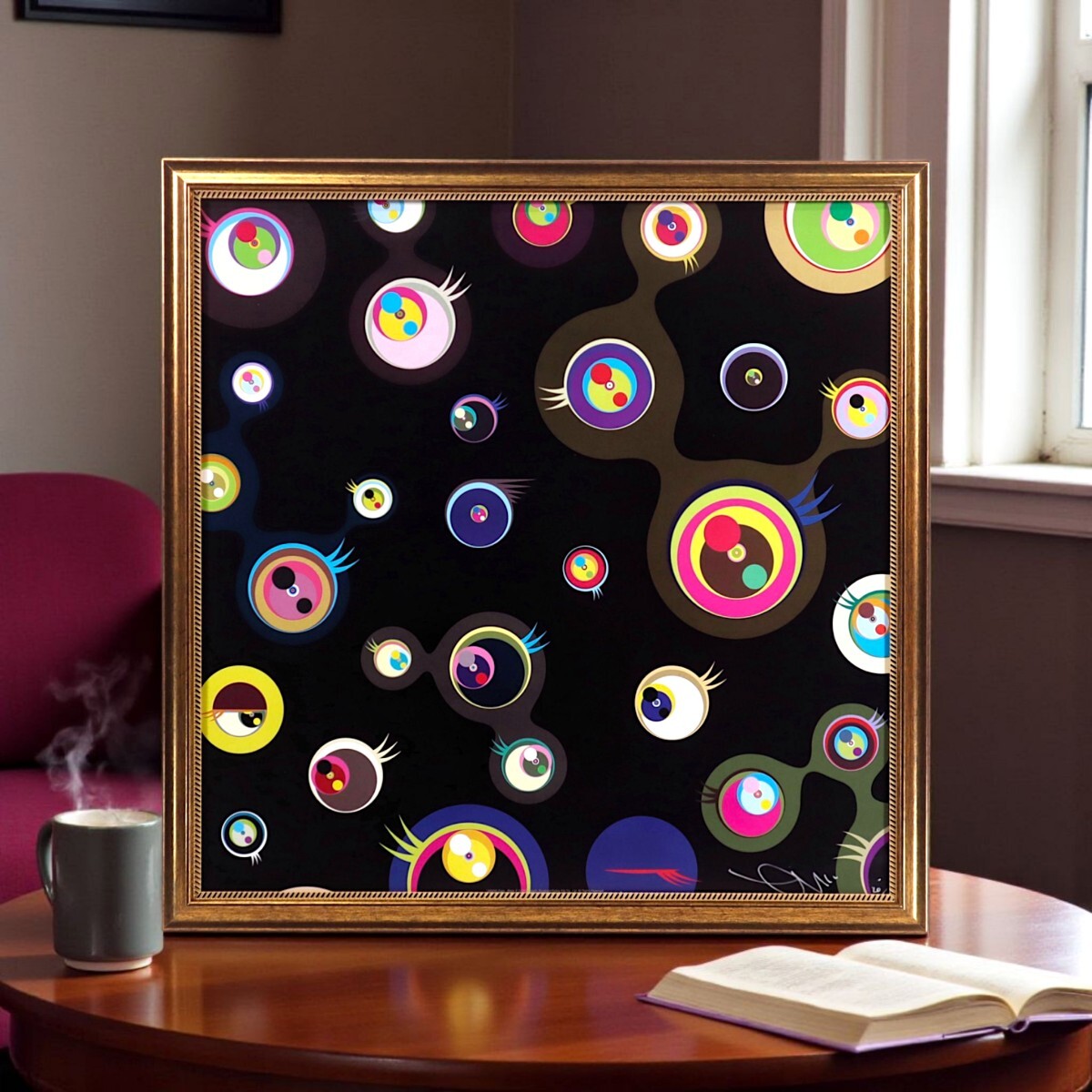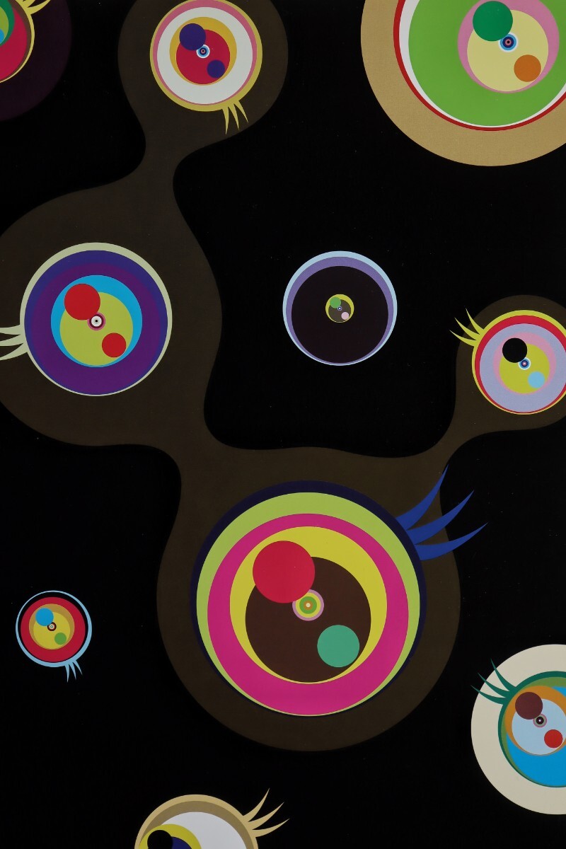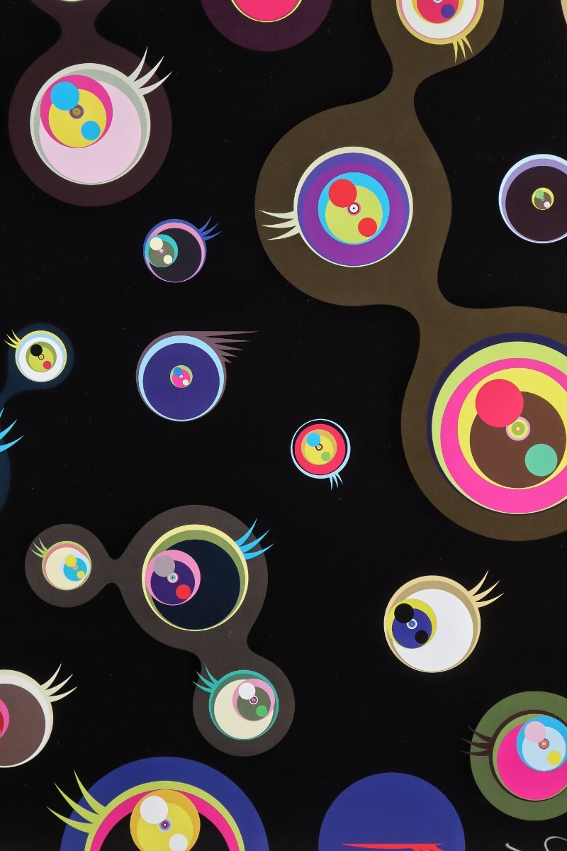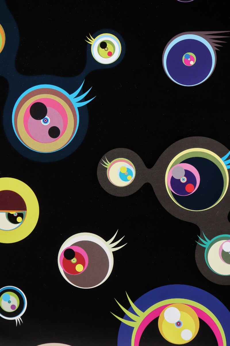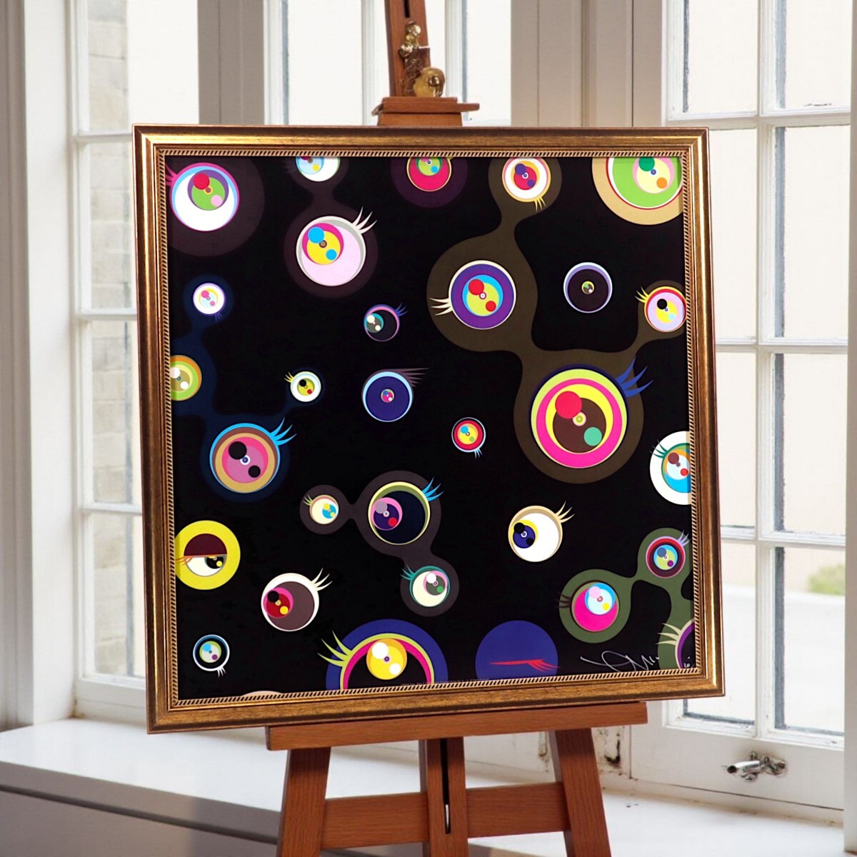 真作 村上隆 2011年オフセットリトグラフ「めめめのくらげ 黒3」画寸 50cm×50cm 黒を基調の画面にビビッドな色彩 Jellyfish Eyes 11678