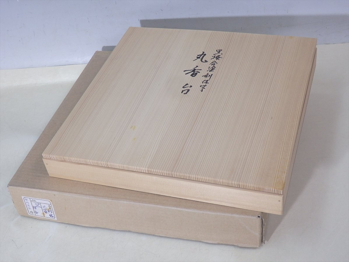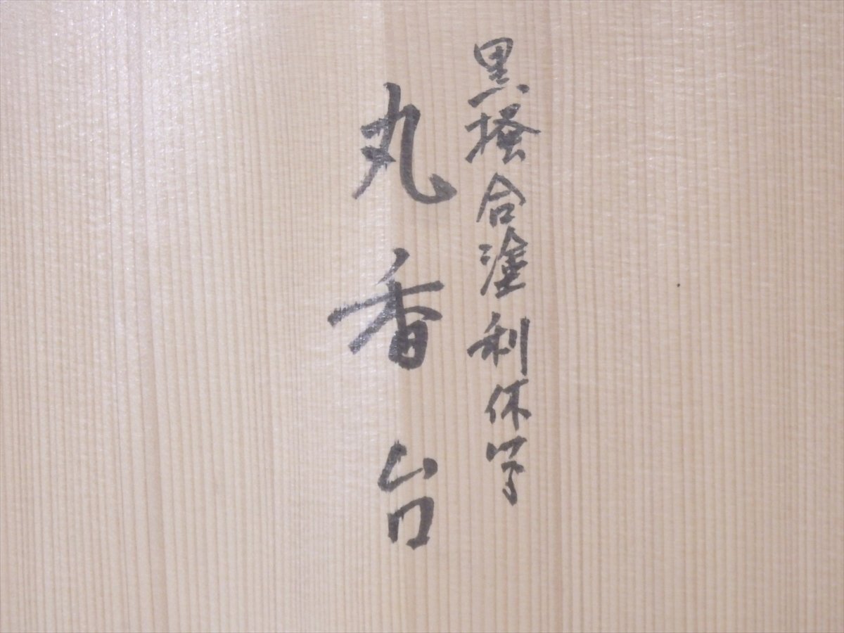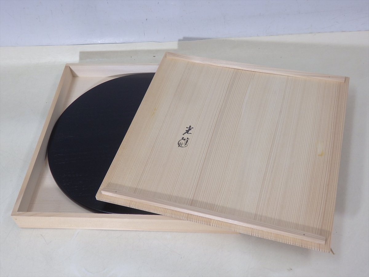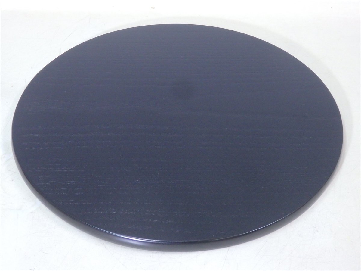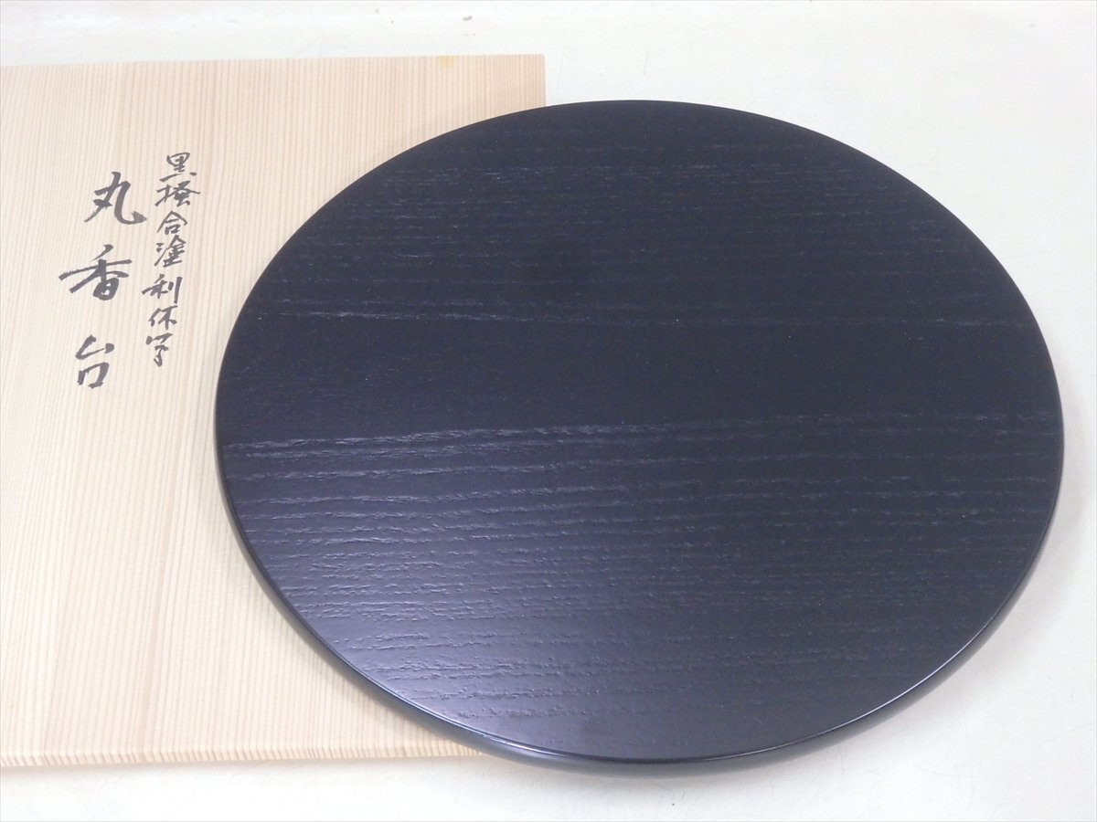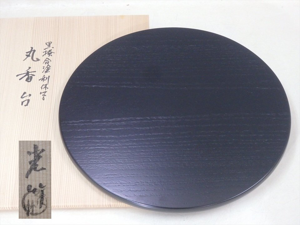 ★美品!谷内光竹作【黒掻合塗利休形丸香台 共箱】木製漆器 直径32cm 厚1.3cm 茶道具 花台 敷板 茶器 花入 薄板