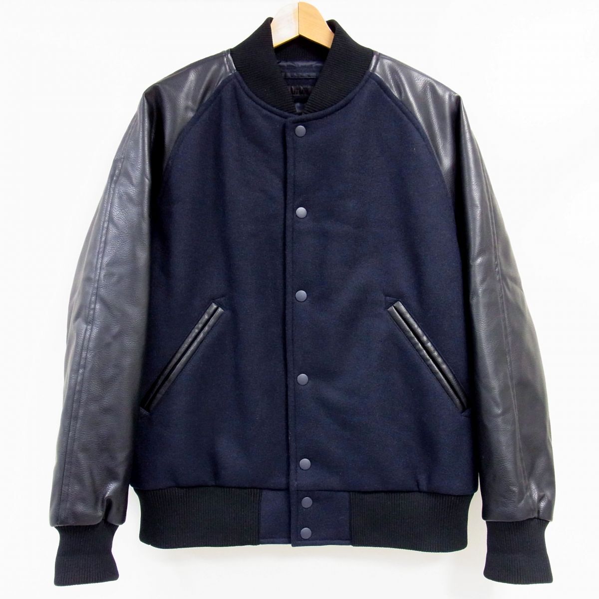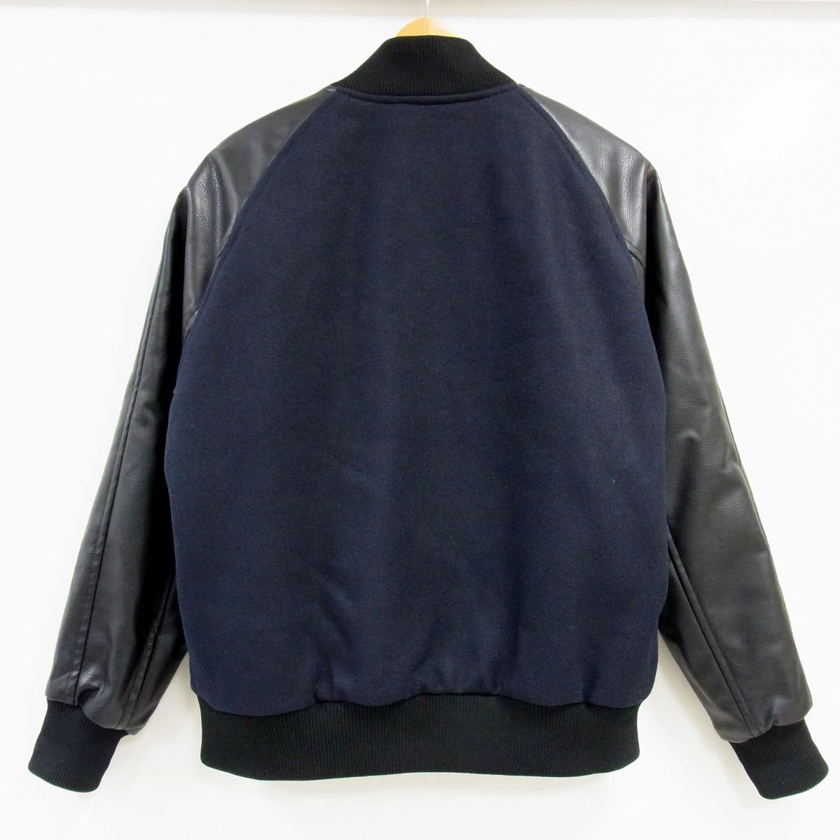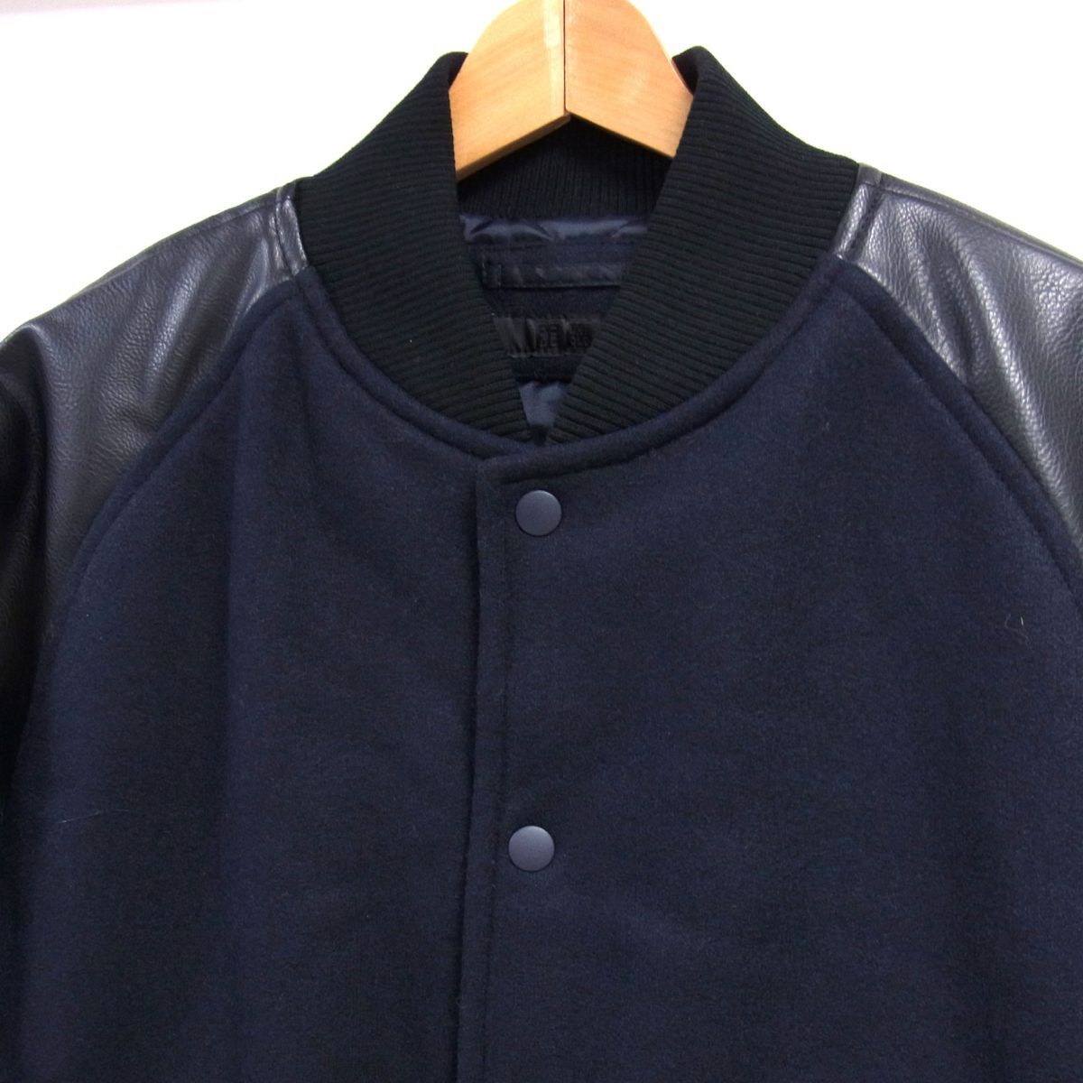 美品 22AW UNIQLO ユニクロ スタジアムジャンパー アワードジャケット ネイビー×ブラック 中綿入スタジャン メンズ L