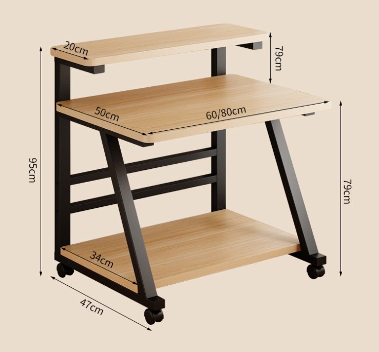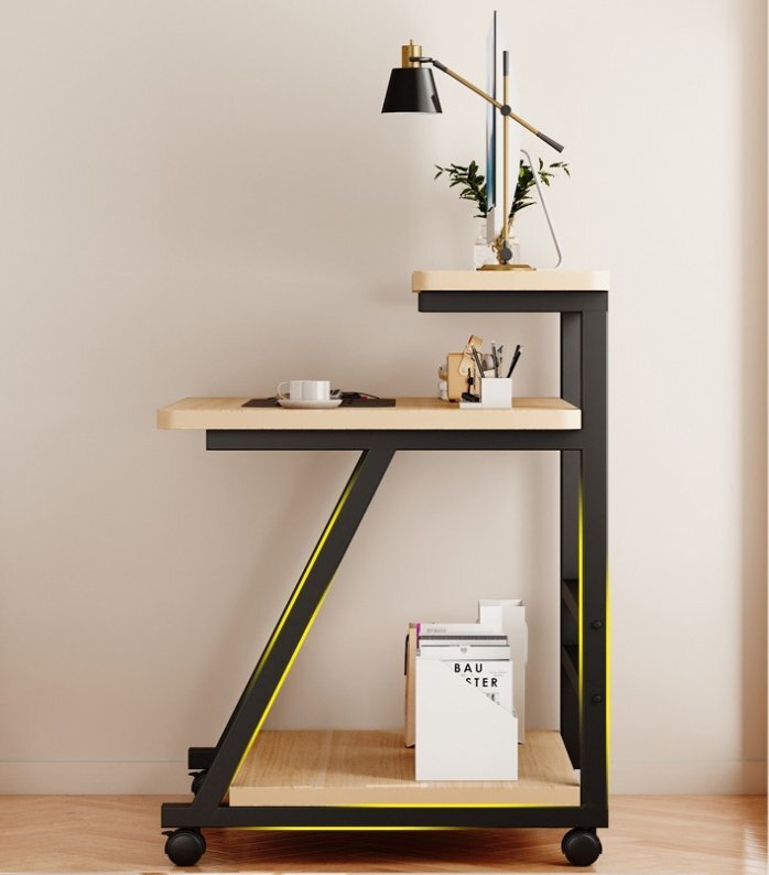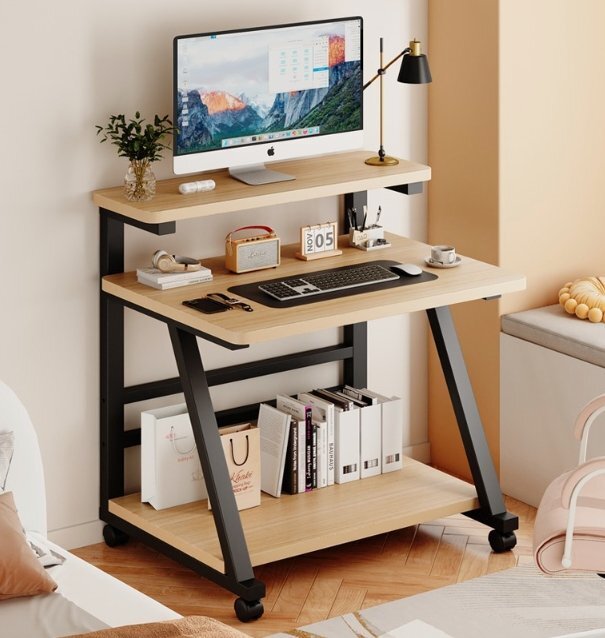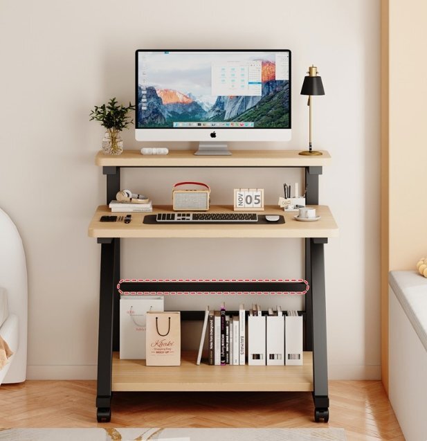 小さめのパソコンデスク、家庭用ミニ移動式デスク、寝室用シングル簡易二段パソコンデスク