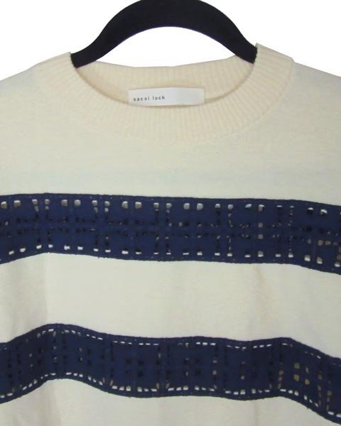 | サカイ ラック sacai luck オフ白 紺 カットワーク ニット 2 |