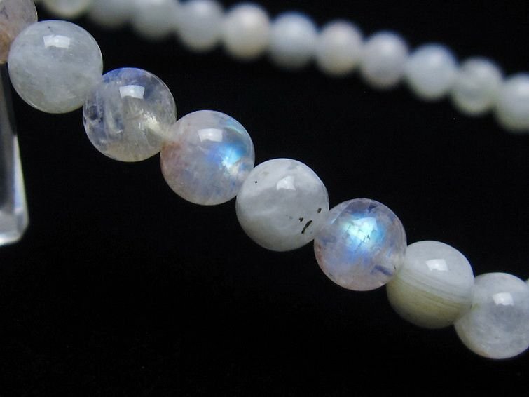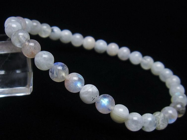| ■商品名: ムーンストーンブレスレット ■商品ID: T459-10946 ■商品重量:約 8.4g ■商品サイズ:内周約:156mm(±5mm)粒直径約:6mm(±0.5mm) 【ムーンストーン(月長石)】 ムーンストーンは長石の一種で正長石(オーソクレース)を主としアルバイト(曹長石)成分を含んでいます。そのために美しいシラー効果が確認できます。乳白色や半透明のものが一般的ですが、他にも青やオレンジ等の様々な色が確認されています。柔らかい月の明かりのような光沢を持ち、真珠を思わせるような上品な石です。 ムーンストーンは古来より月の光が宿る石とされてきました。灼熱の国インドでは月は安らぎの象徴とし崇められてきましたが、その月の力を宿した聖石としてムーンストーンを身に着けていたそうです。 月の光のような柔らかな波動を持つムーンストーンは、心配や緊張を解きほぐし、心や情緒を安定させる効果があるとされていることからうつ病やノイローゼを防ぐとされています。また感受性や危機を察する直観力が高まるとされ、厄除けになることから旅人の守護石ともされています。 自分の中にある潜在能力を高め、ひらめきをもたらしてくれるとされていますのでクリエイティブな職業に携わっている方にお勧めしたい石です。 恋愛面においては「恋人たちの石」と呼ばれ、互いの絆や愛情を深めるために恋人への贈り物ともされてきました。またお目当ての異性に贈ると、恋が芽生えたり、友情が愛情に変わるとも言われています。一度終わった関係を復活させる等、別れた恋人同士を再び結びつけるという伝承もあります。遠距離恋愛の守護石としても有名です。変わらない愛情と優しい情熱を盛り上げてくれるそうですので、夫婦で持つのもお勧めです。 ■ワンポイント情報 月は女性性を象徴し、女性の身体の調子も月の満ち欠けに関わっているという説は有名です。ムーンストーンは女性特有の身体の不調や更年期等のイライラを鎮めてくれるとされています。また生理痛、不妊、出産の痛みを改善し、安産のお守りともされています。 暗い夜道を照らす月の光のように、闇の悪霊を祓い、危険を察知する感が良くなるとされていますので、夜道を歩いて帰宅する女性はお守りとして一つ持つと良いかもしれません。 |