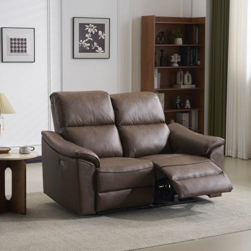 二人掛けソファ 電動 リクライニング USB+Type-C充電口付き 156° リクライニングソファ 2人掛け オットマン一体型 【ブロンズブラウン】