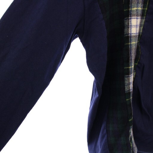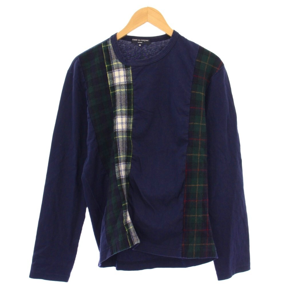 コムデギャルソンオム COMME des GARCONS HOMME AD2011 Tシャツ ロンT 長袖 クルーネック ウール 切替 チェック柄 M 紺