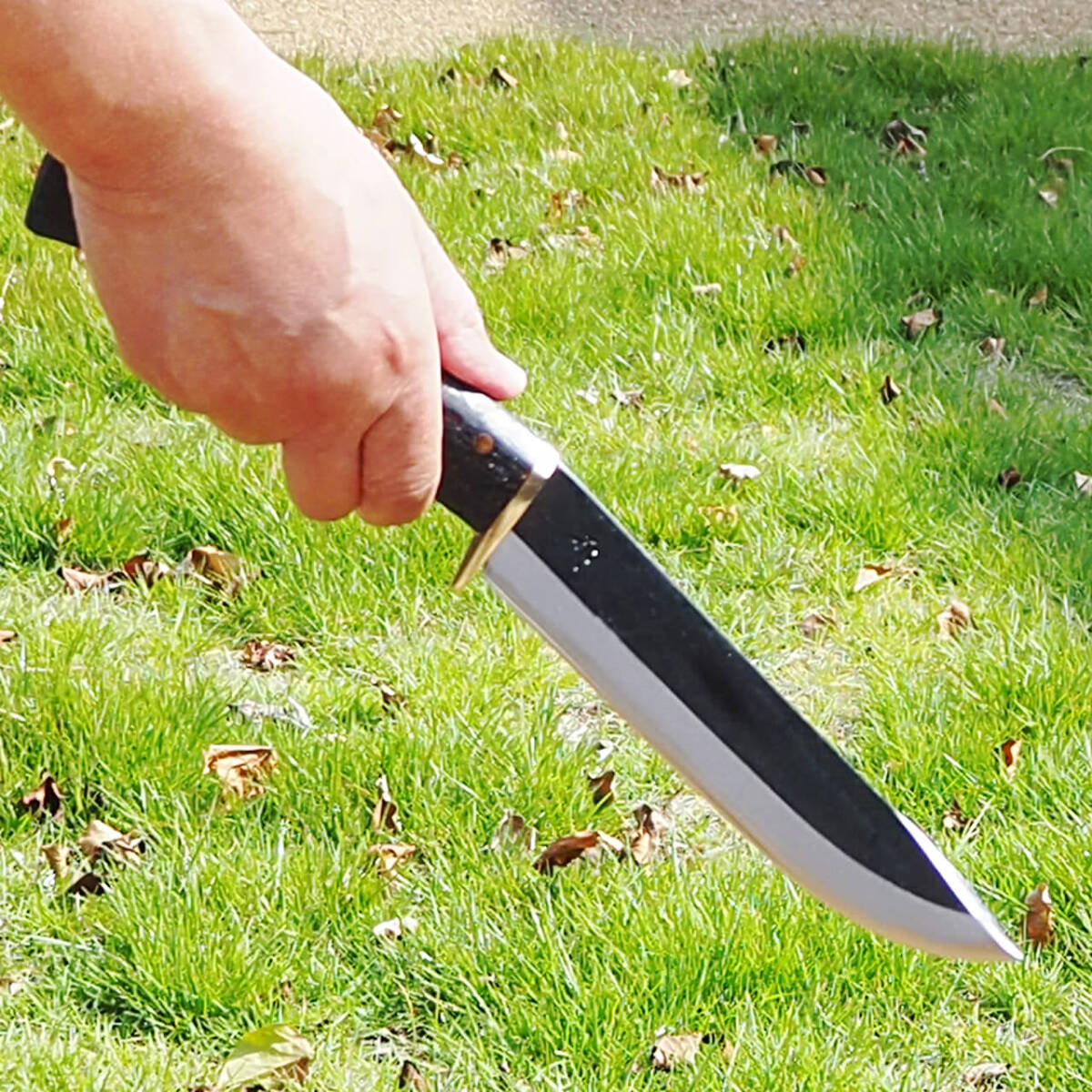 ある程度刃の根元付近に力がかかるので刈りやすい剣鉈です。草がボウボウに生える道なき道を切り開く用途が主です。