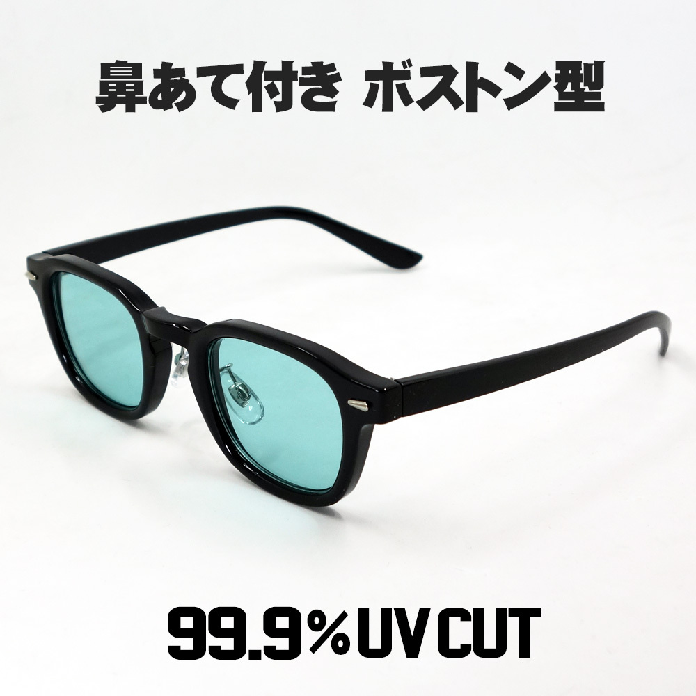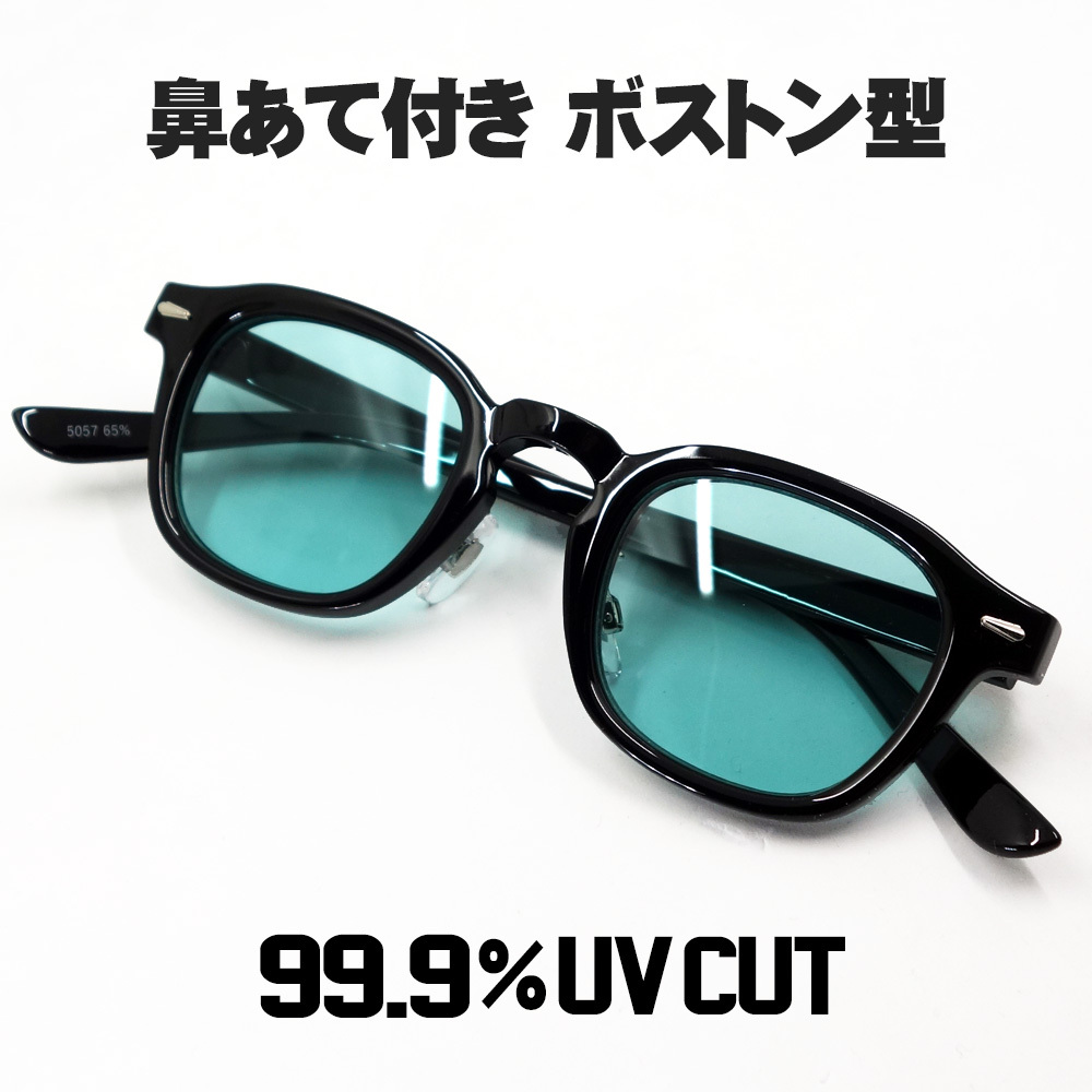 ボストン型 サングラス メンズ おしゃれ 40代 50代 UVカット ブラック エメラルドグリーン レンズ 新品