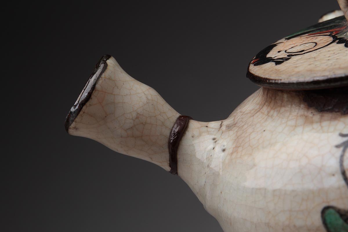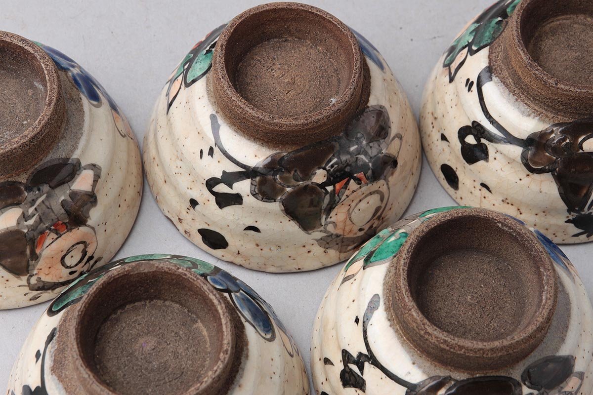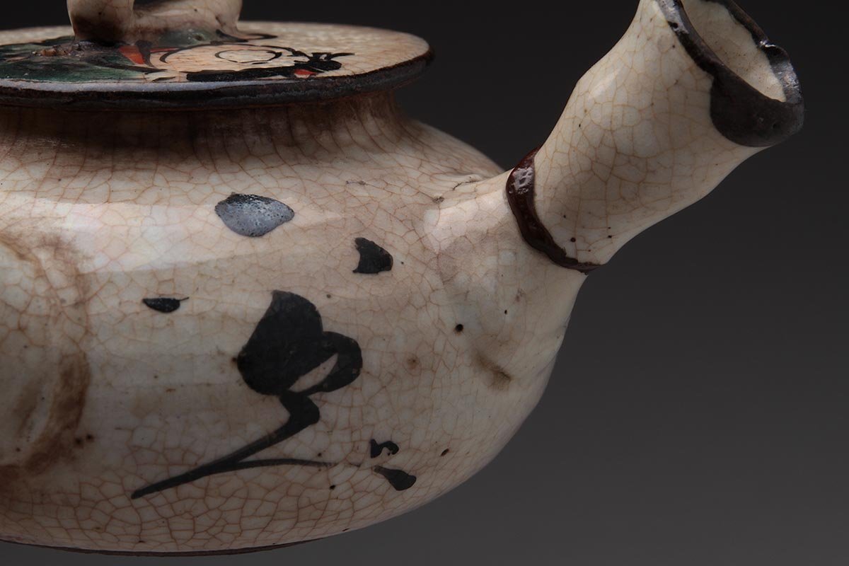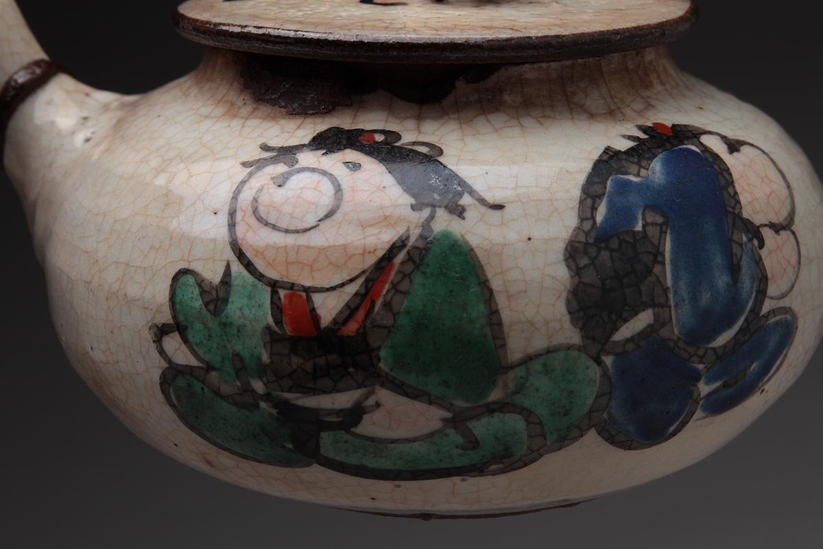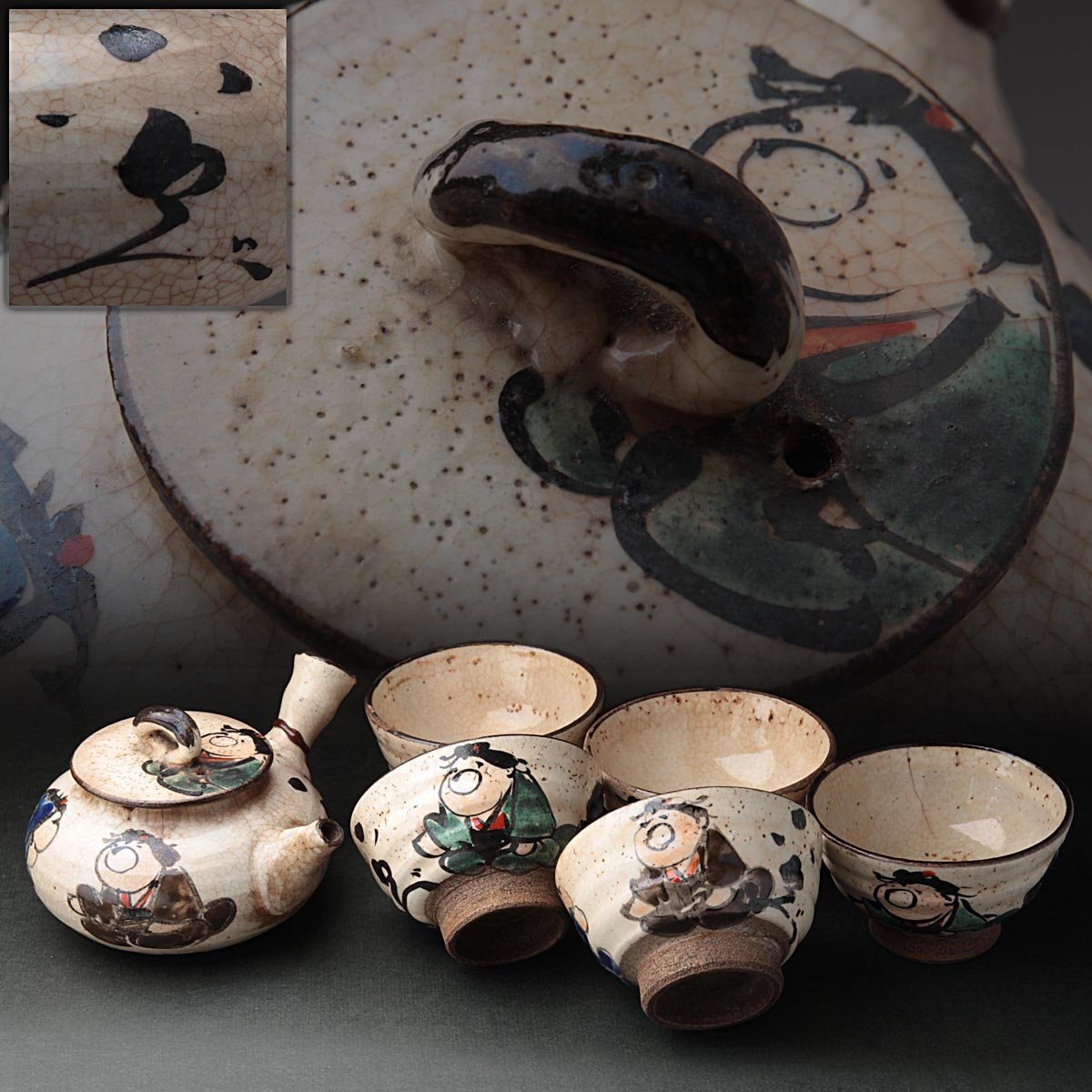 | ◆ 時代【清水六兵衛 造】古稀彩 人物文 茶器揃 六点一式「砲口 横手急須・煎茶碗 五客」煎茶道具 茶具 茶器 旧家蔵 ◆