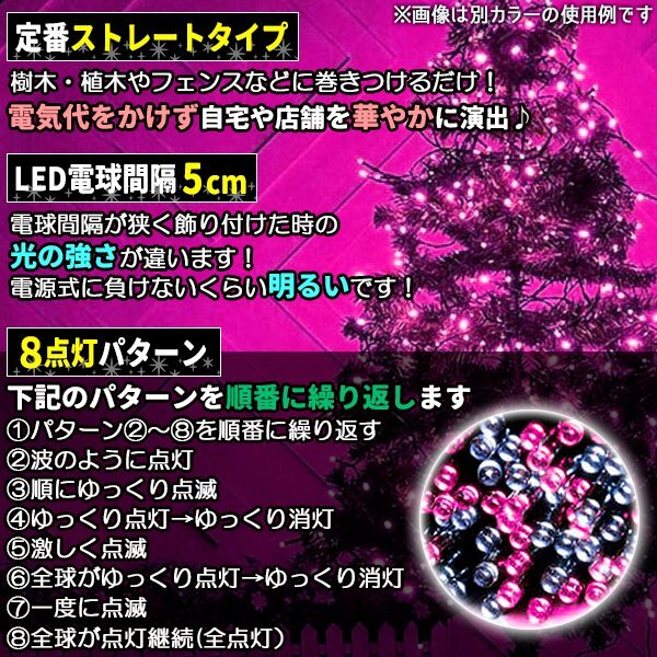 ソーラー イルミネーション 屋外 クリスマス ストレート 屋外用 イルミネーションライト 300球 ピンク×ホワイト