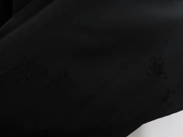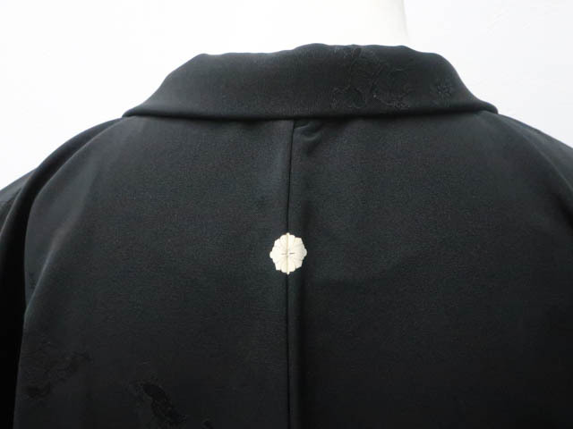 リサイクル商品のため、衿、両袖、羽裏に薄しみ汚れがございますが着用可能なお品です。 地色は 黒です。 1枚目の画像が近いお色かと思われます。 素材は正絹です。 |
