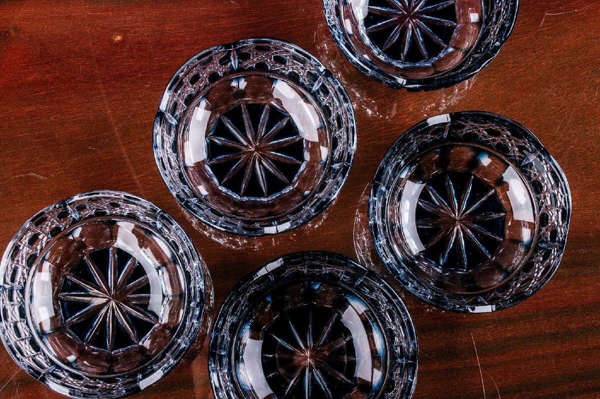 【うつわ】 切子ガラス 小鉢 5客 F059A 古美術 骨董 古玩 茶道具 日本料理 料亭 懐石
