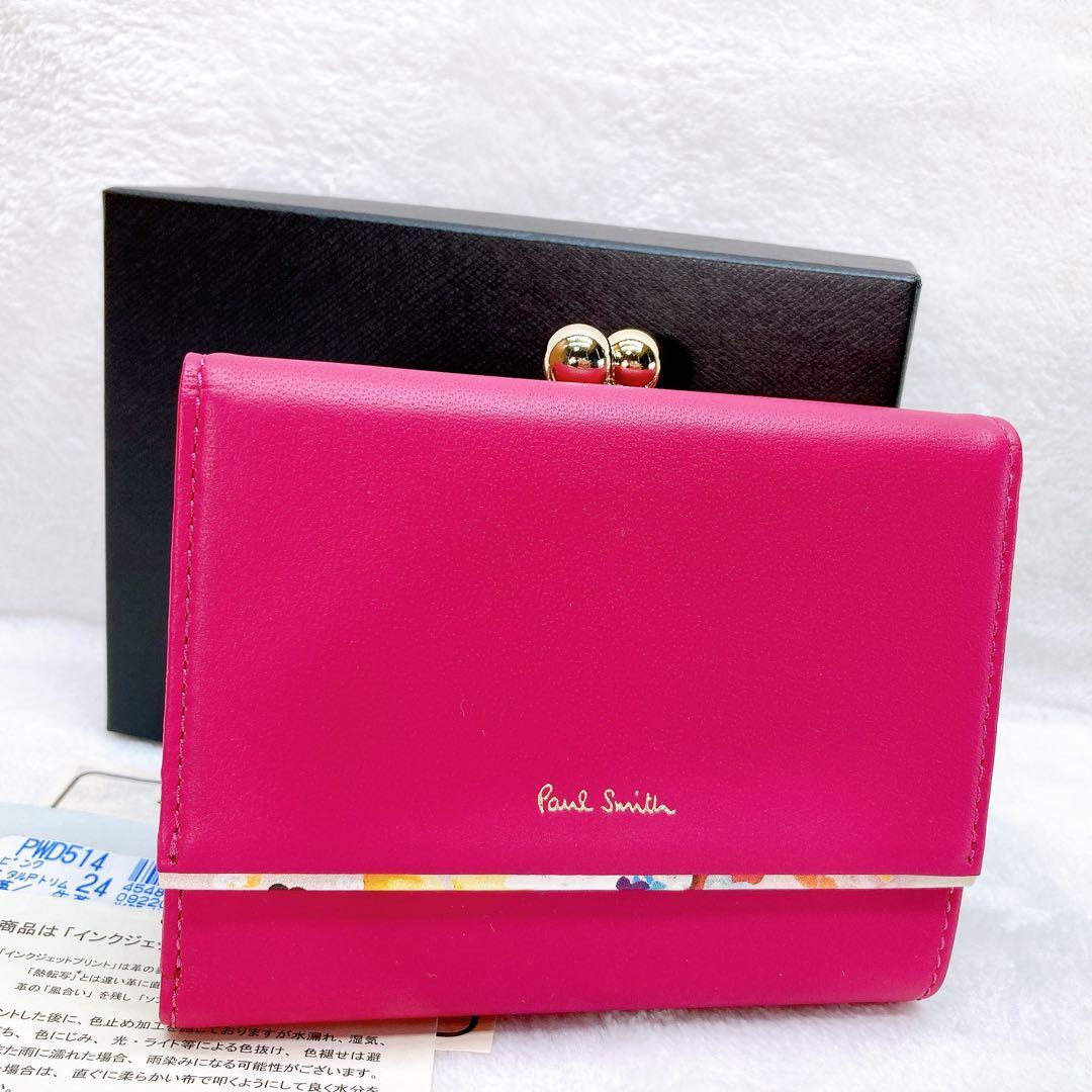 ポールスミス ペタルプリント 3つ折り財布 花柄 がま口 レザー