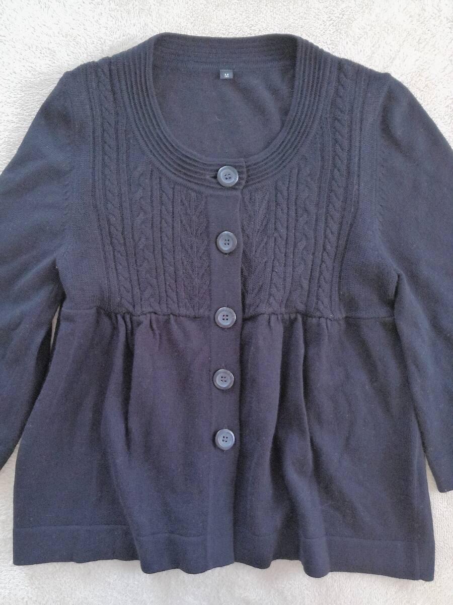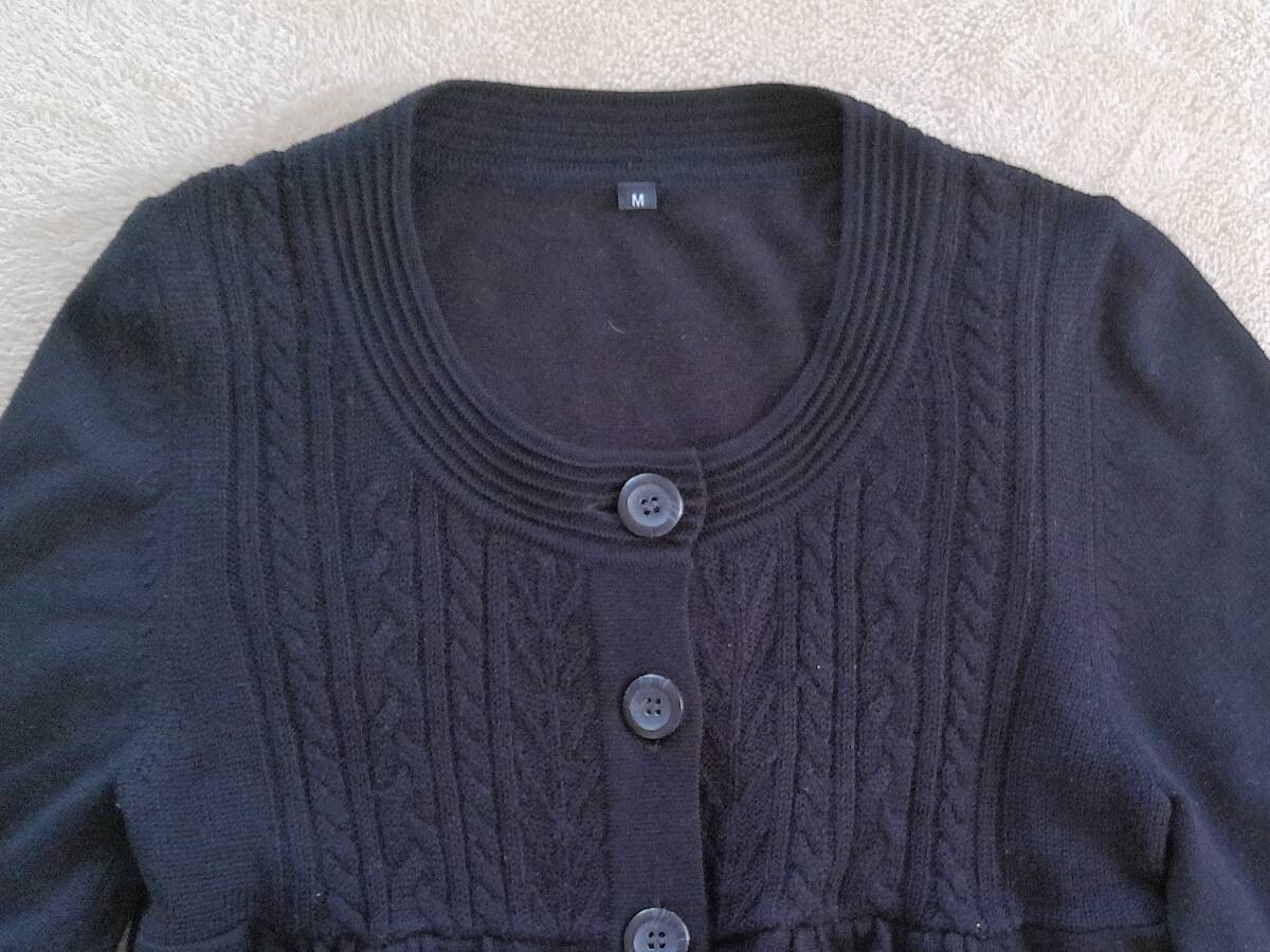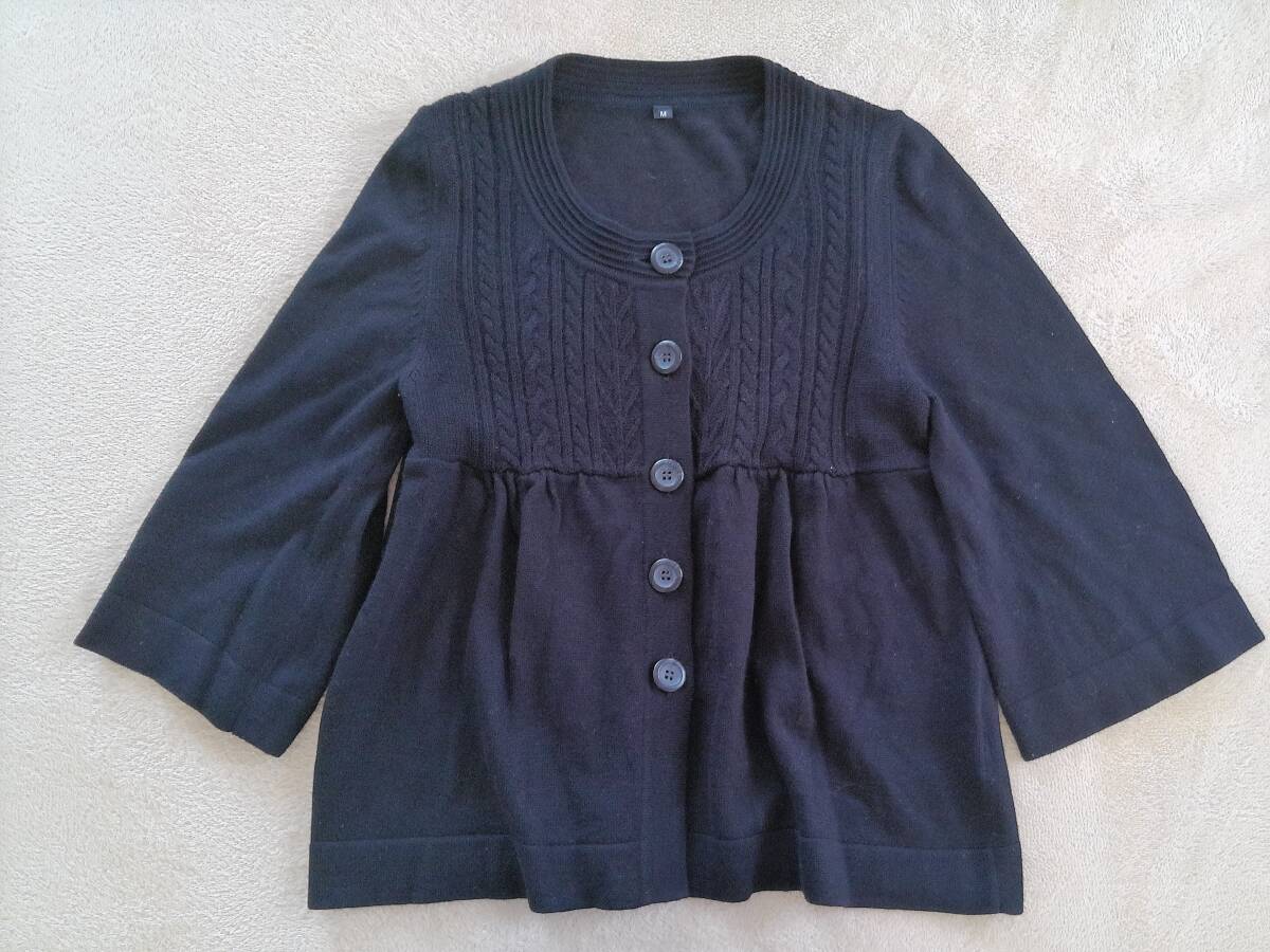 (ニットカーディガン)(7分丈袖)(黒)(サイズレディースM)