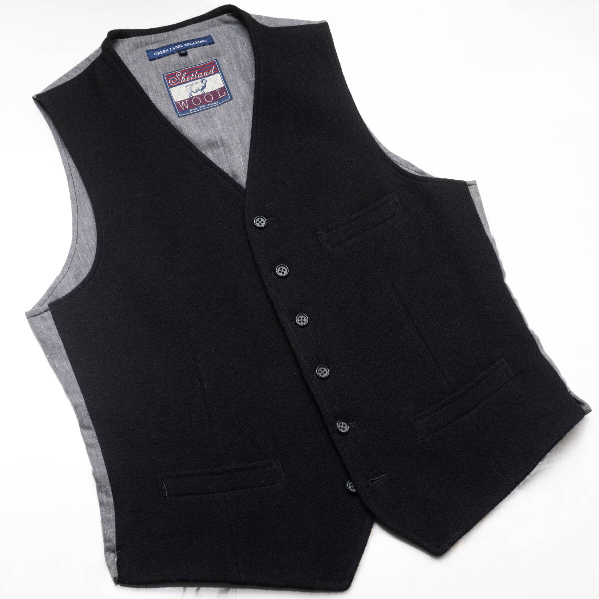 【表記XL】 良品『UNITED ARROWS × Shetland Wool』 ジレ ベスト ウール100% ツイード調 ブラック 秋冬 メンズ
