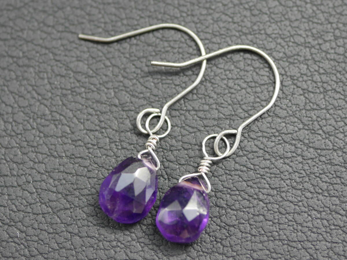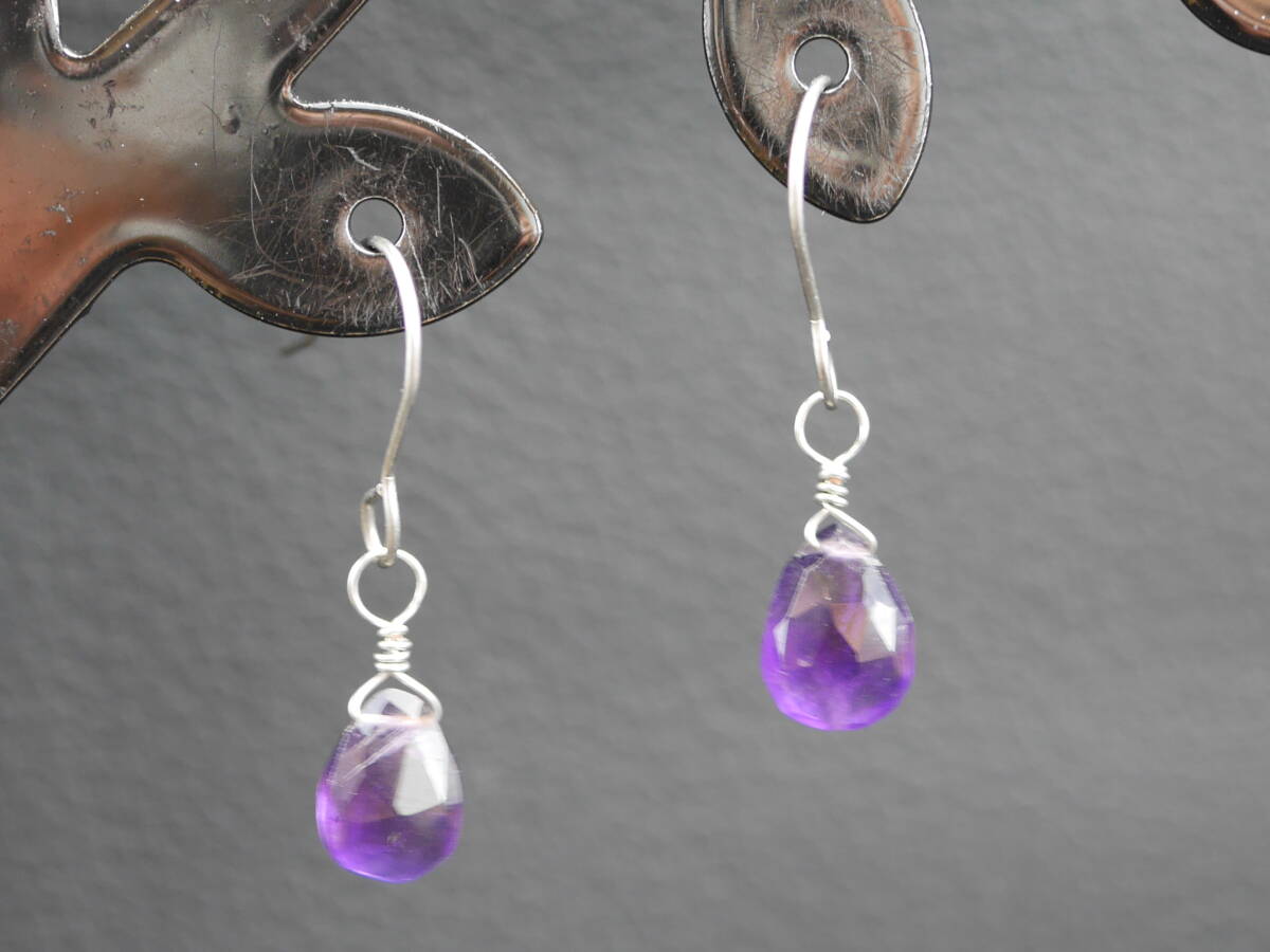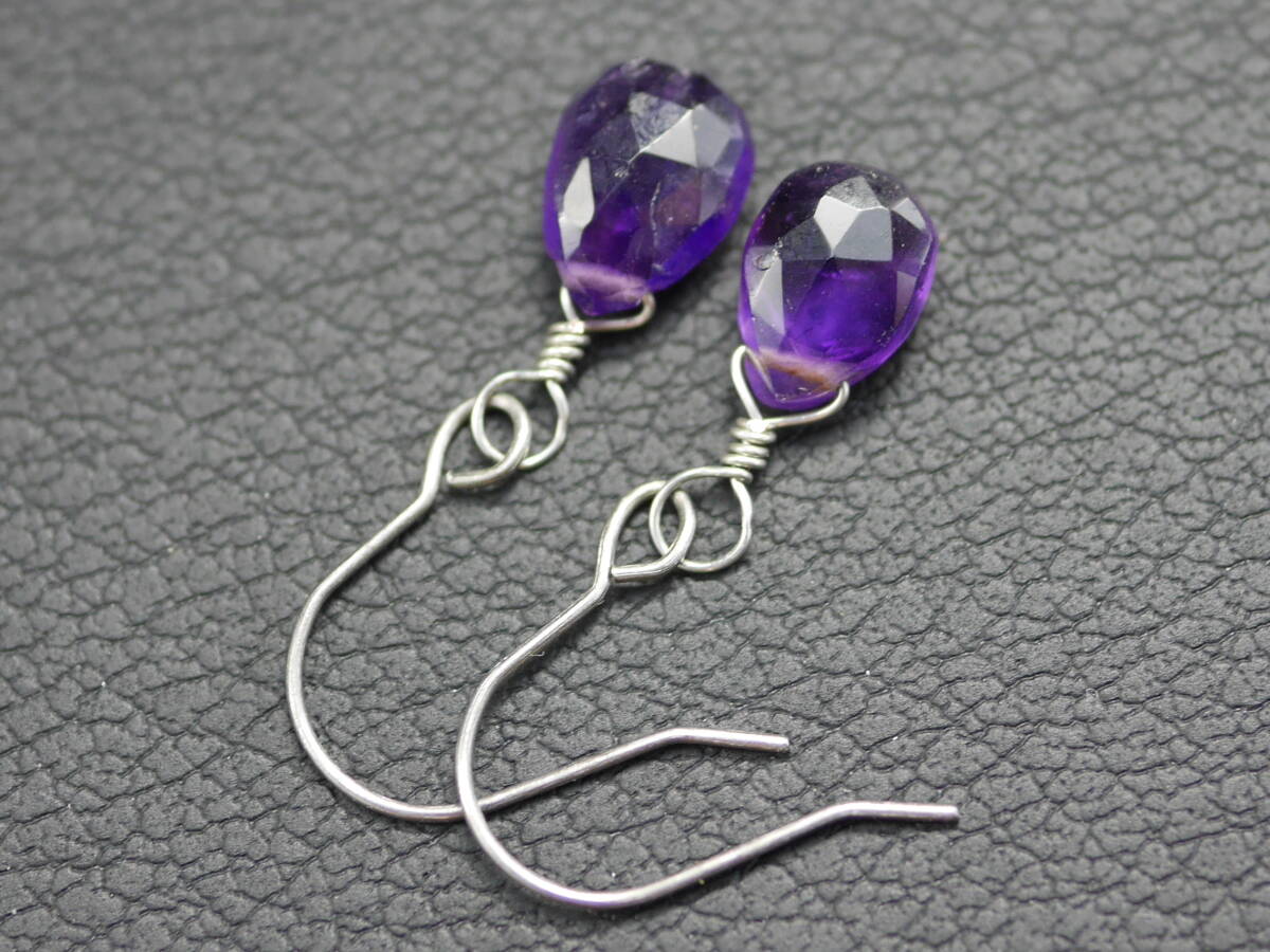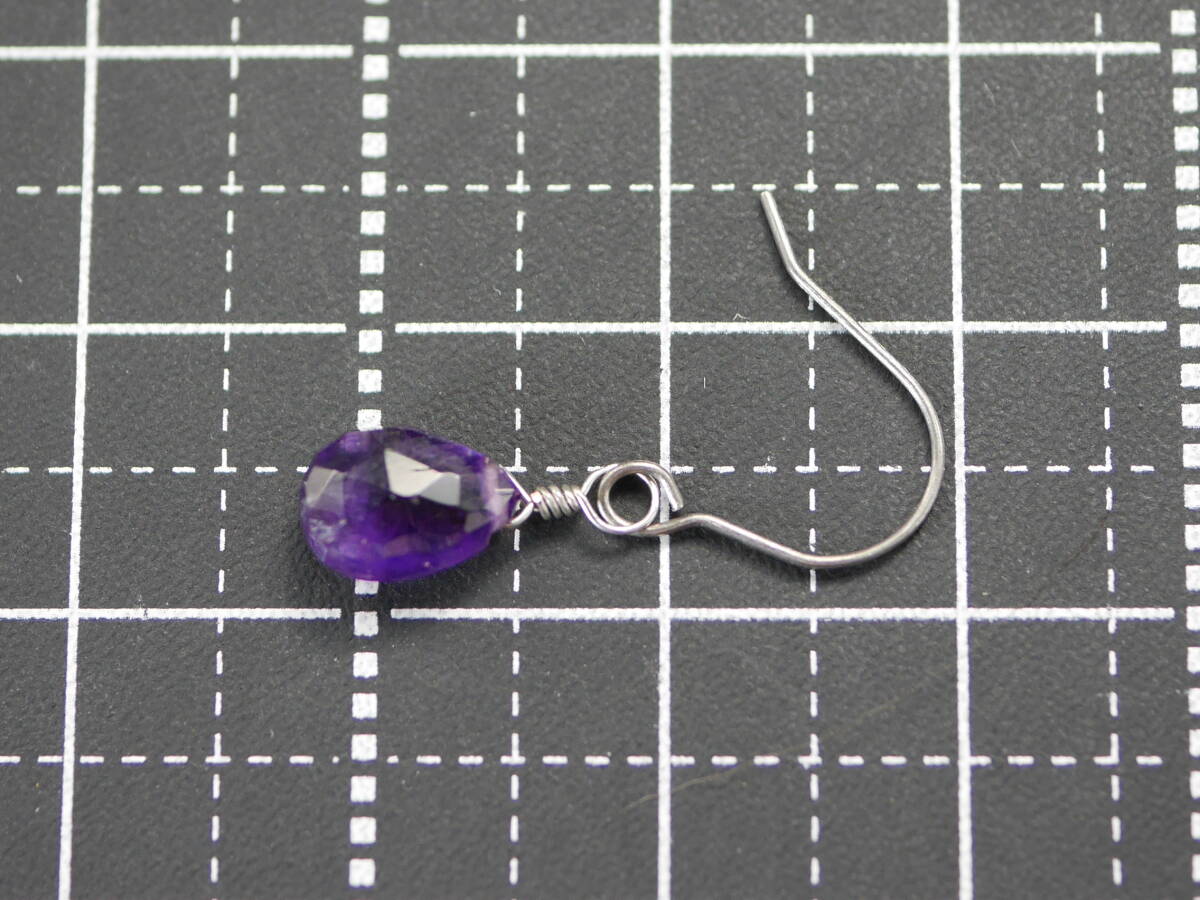 【チタンフック】ペアシェイプカットアメジストの1粒ピアス 396