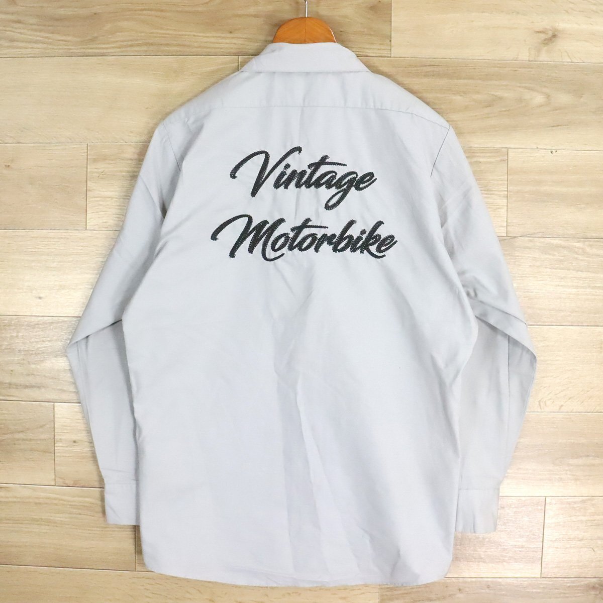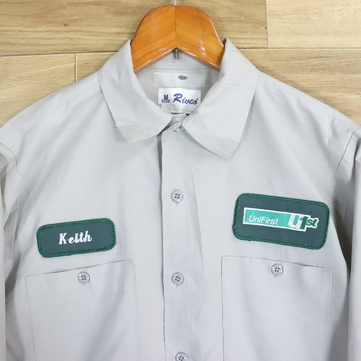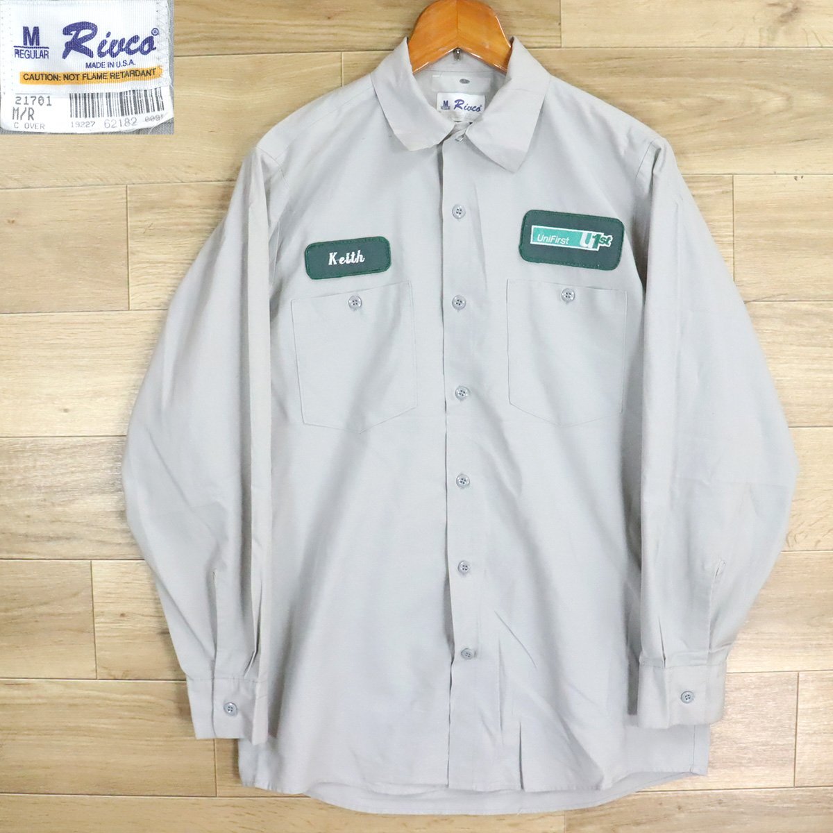 J11T/D10.27-1 アメリカ古着 米国製 Riuca ワークシャツ ワッペン M メンズ チェーンステッチ バック刺繍 ヴィンテージバイカー