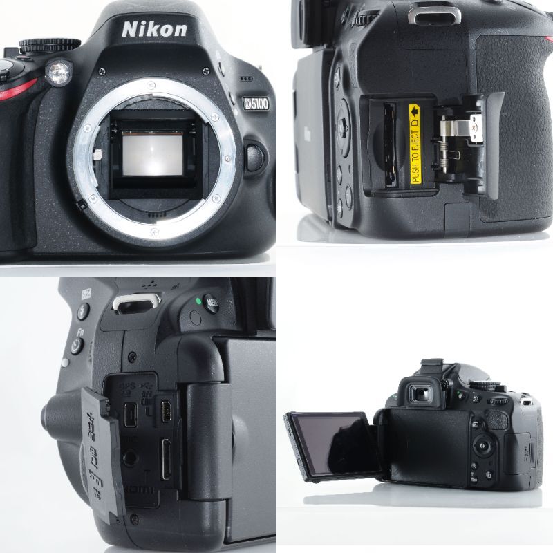 Nikon D5100は、有効画素1620万画素のCMOSセンサーを搭載し、高画質な写真とフルHD動画撮影が可能なモデルです。バリアングル液晶を備え、自由なアングルで撮影を楽しめます。