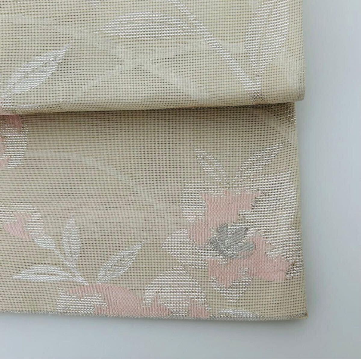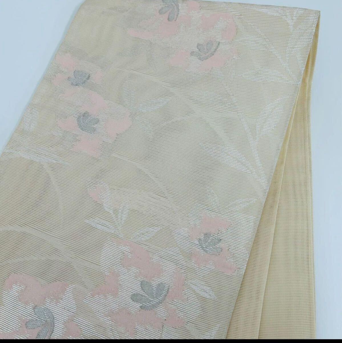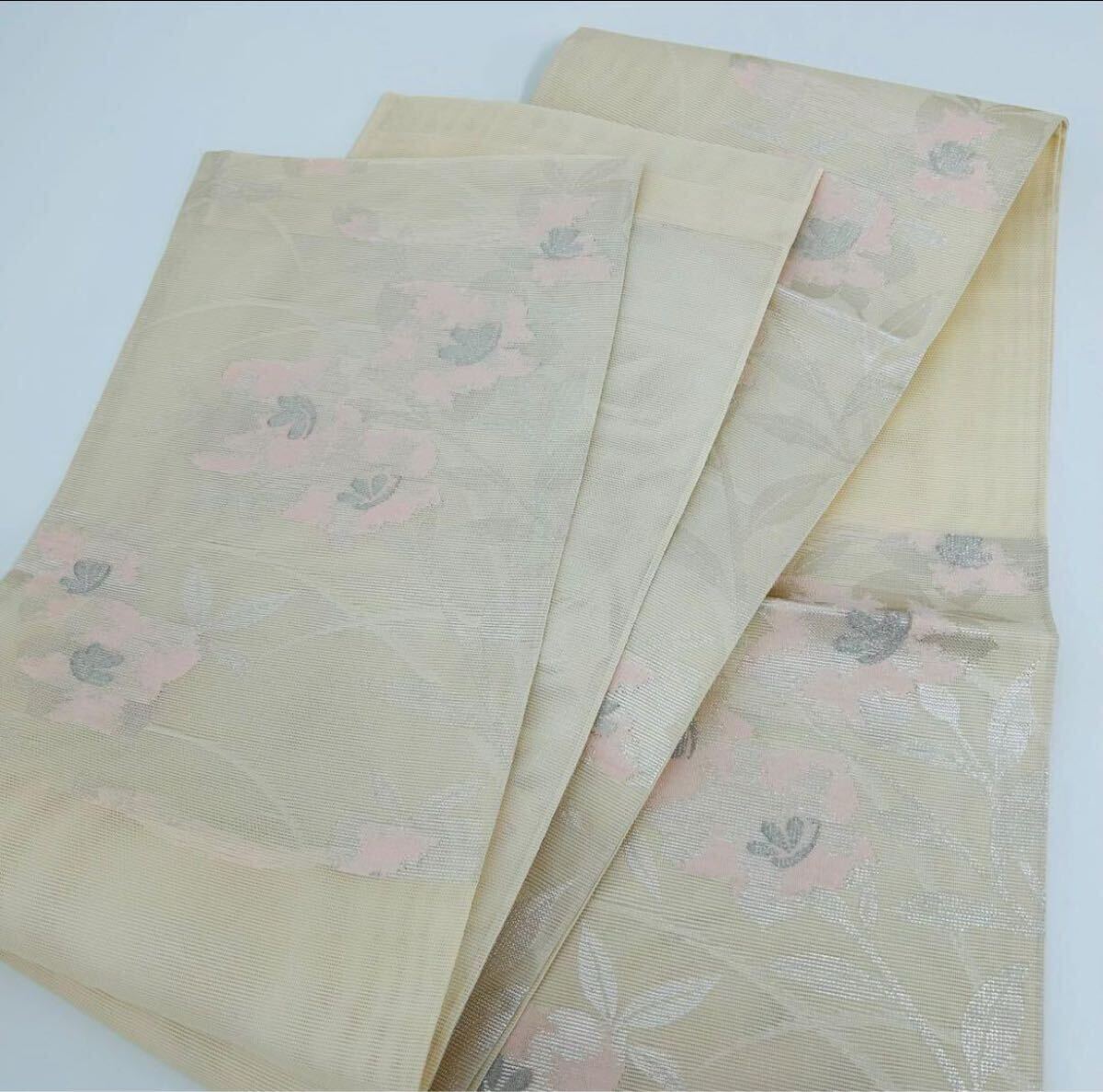 【楓】夏物 夏袋帯 正絹 紗織 銀糸 素敵な花 六通 KU-7246