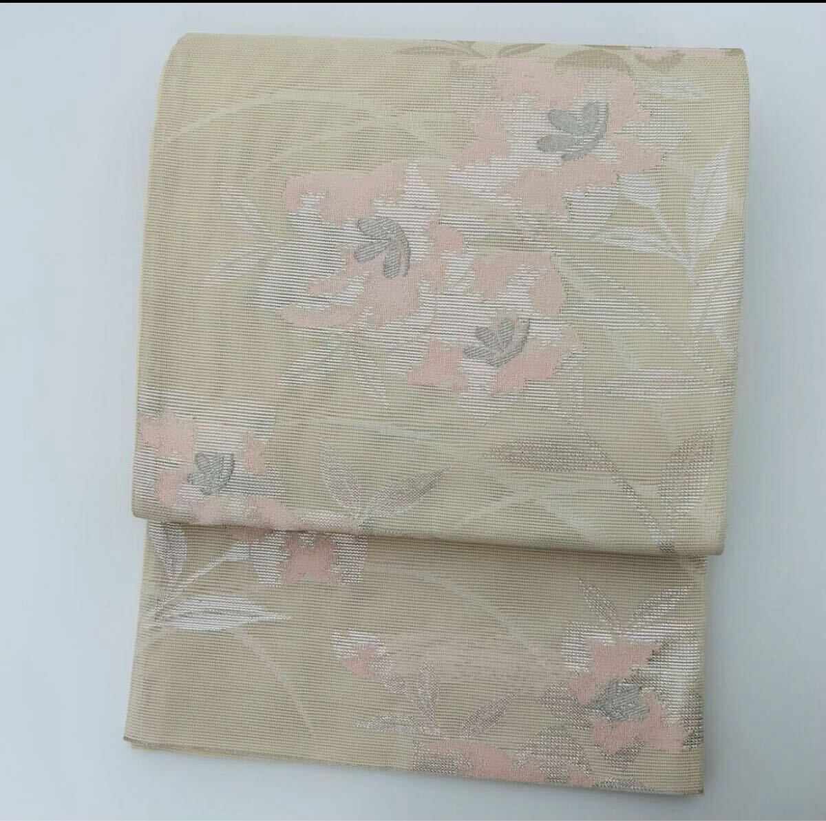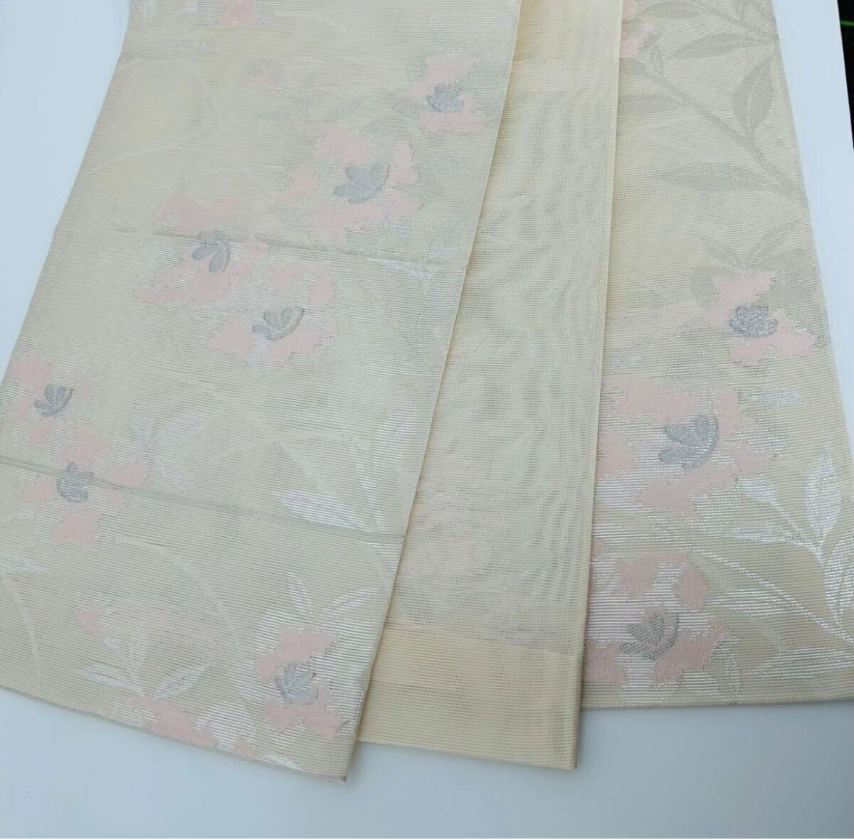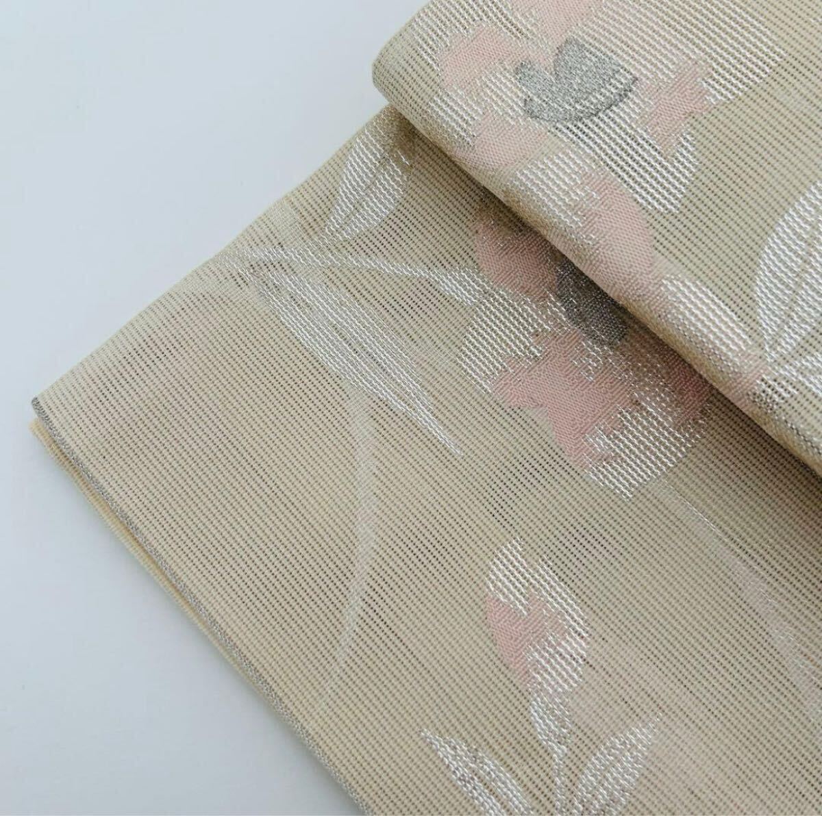 【楓】夏物 夏袋帯 正絹 紗織 銀糸 素敵な花 六通 KU-7246