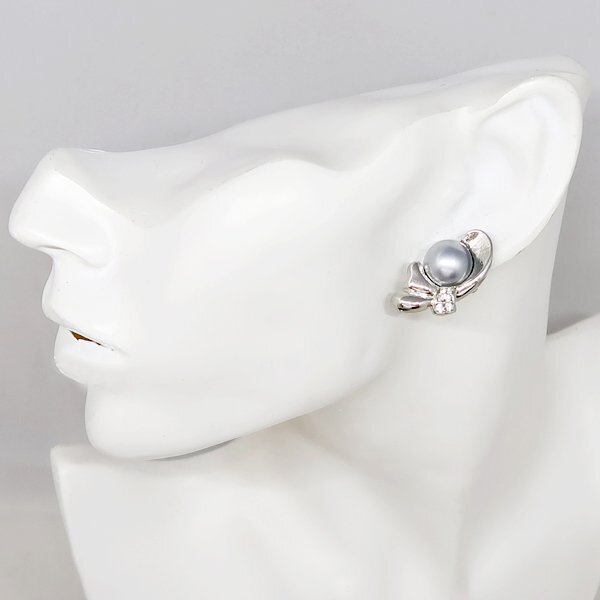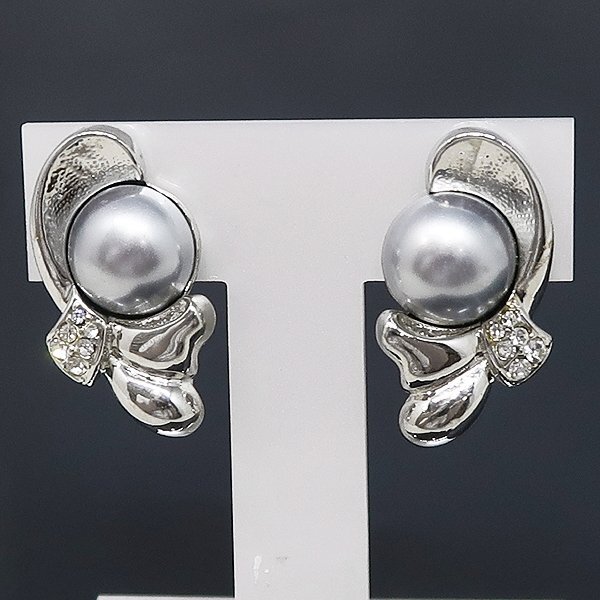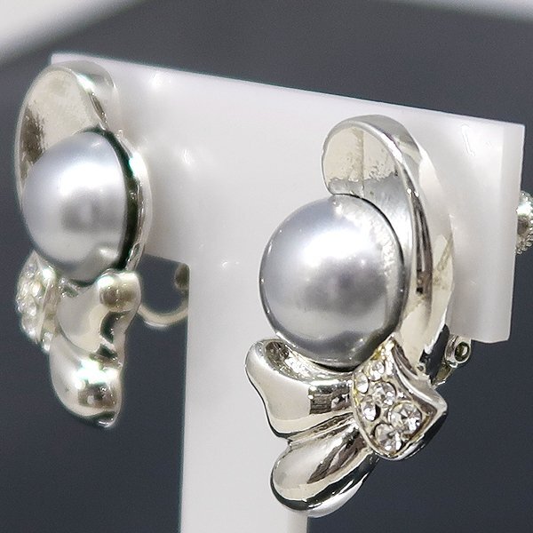 DKG★送料無料 BVA859★ イミテーションパール ラインストーン イヤリング ネジバネ式 フェイクパール グレー パールイヤリング