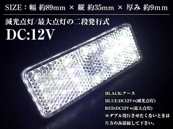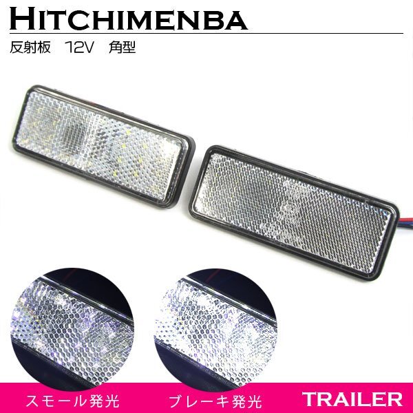 【送料220円】汎用 光る LEDリフレクター 反射板 角型 12V ホワイト 白 1セット2個入り 左右 サイドマーカー トラック トレーラー けん引