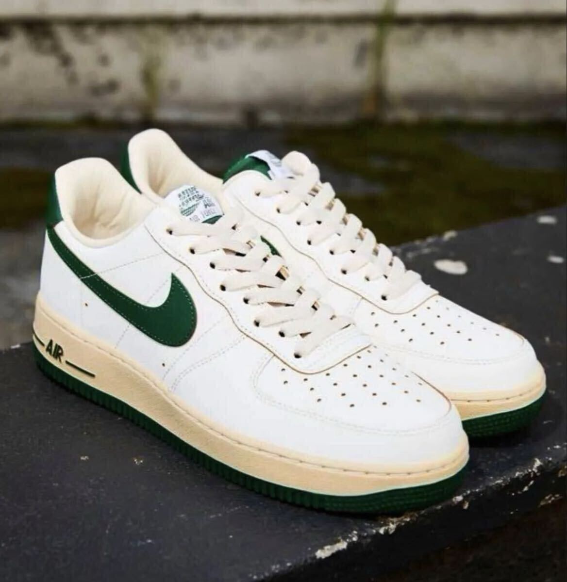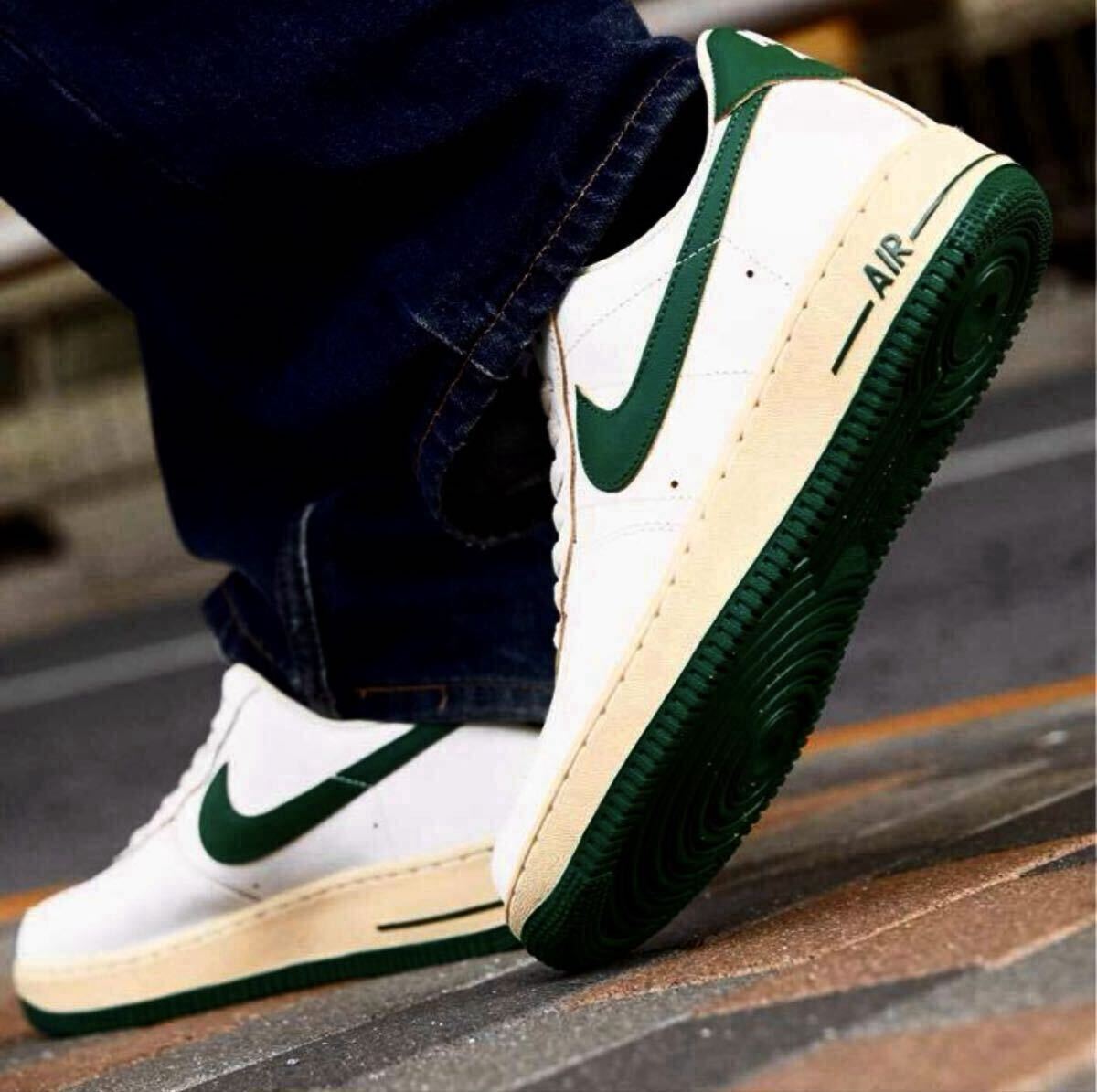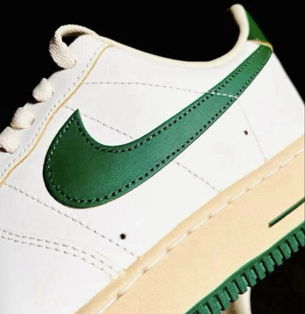 ●ホワイトのアッパーに色あせたヴィンテージライクなミッドソールをベースに、濃厚なグリーンでアクセントをプラス。サイドパネルには往年の、"くの字型"ステッチが加えられ、ヒールにもオリジナルの、"縦NIKE"ロゴを採用した。シュータンのラベルのかすれ具合まで再現した
