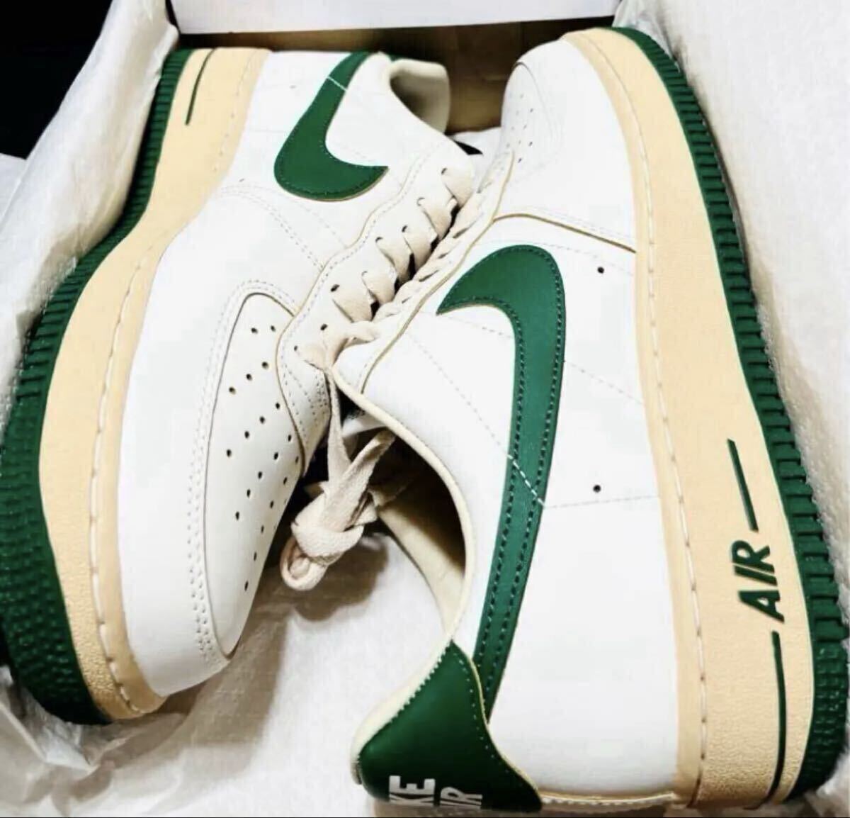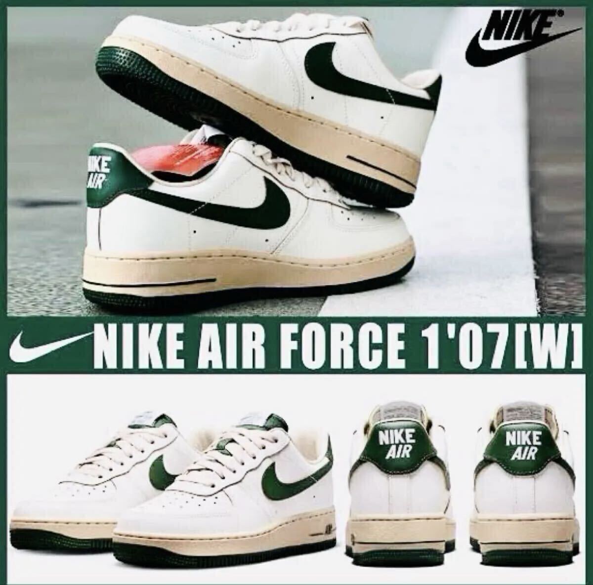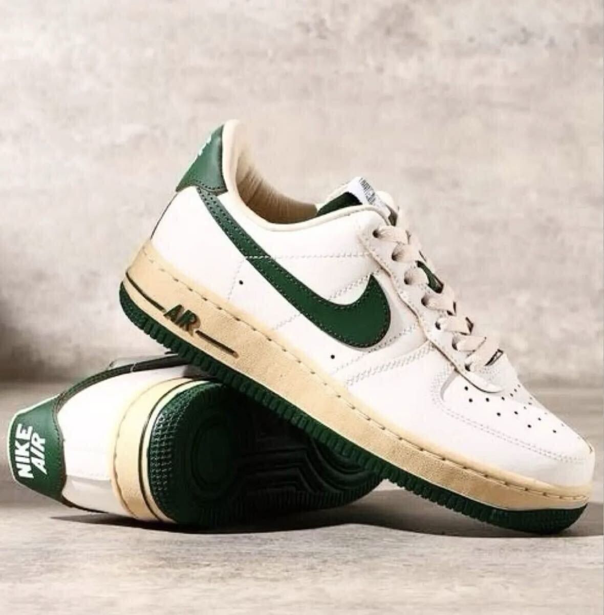 ●ホワイトのアッパーに色あせたヴィンテージライクなミッドソールをベースに、濃厚なグリーンでアクセントをプラス。サイドパネルには往年の、"くの字型"ステッチが加えられ、ヒールにもオリジナルの、"縦NIKE"ロゴを採用した。シュータンのラベルのかすれ具合まで再現した