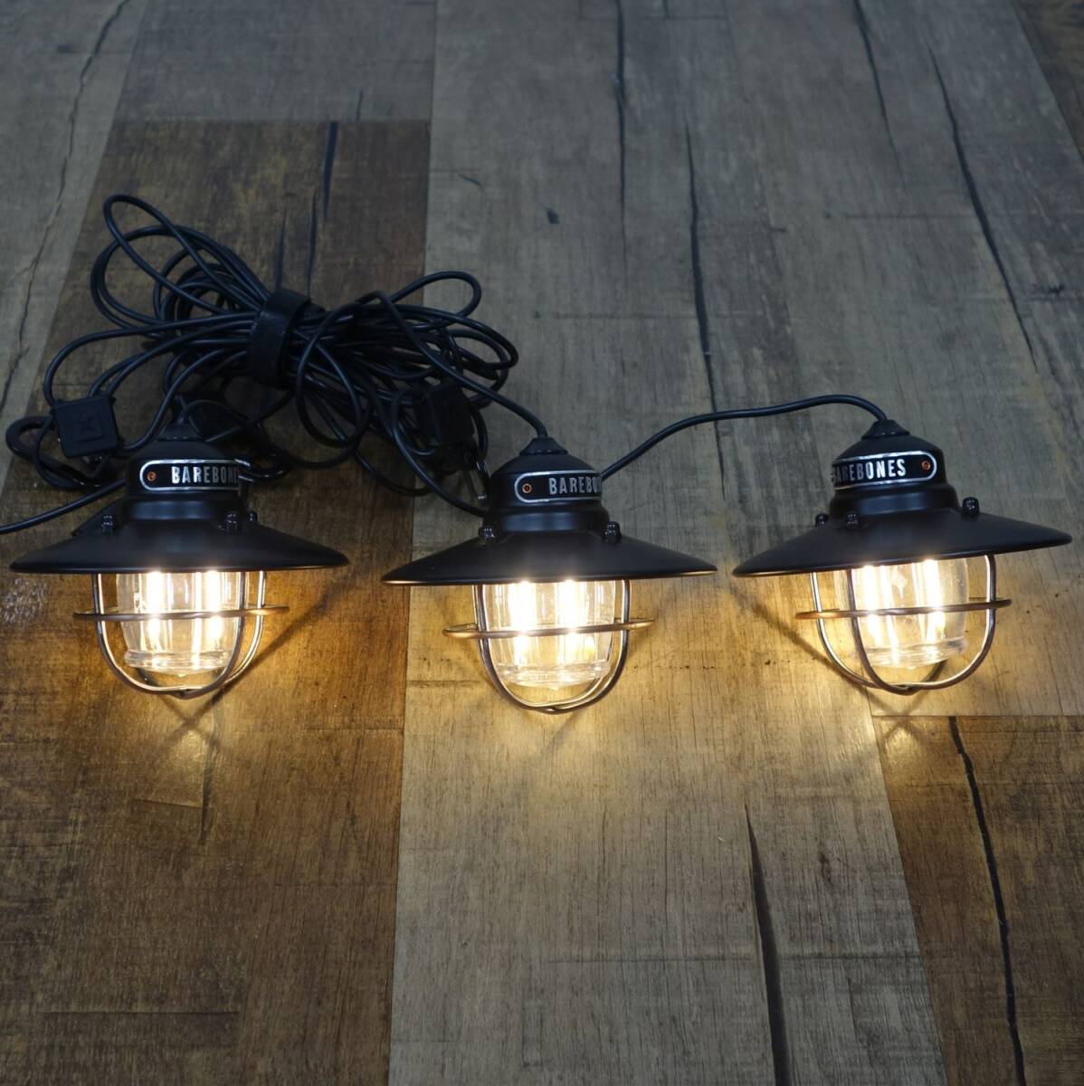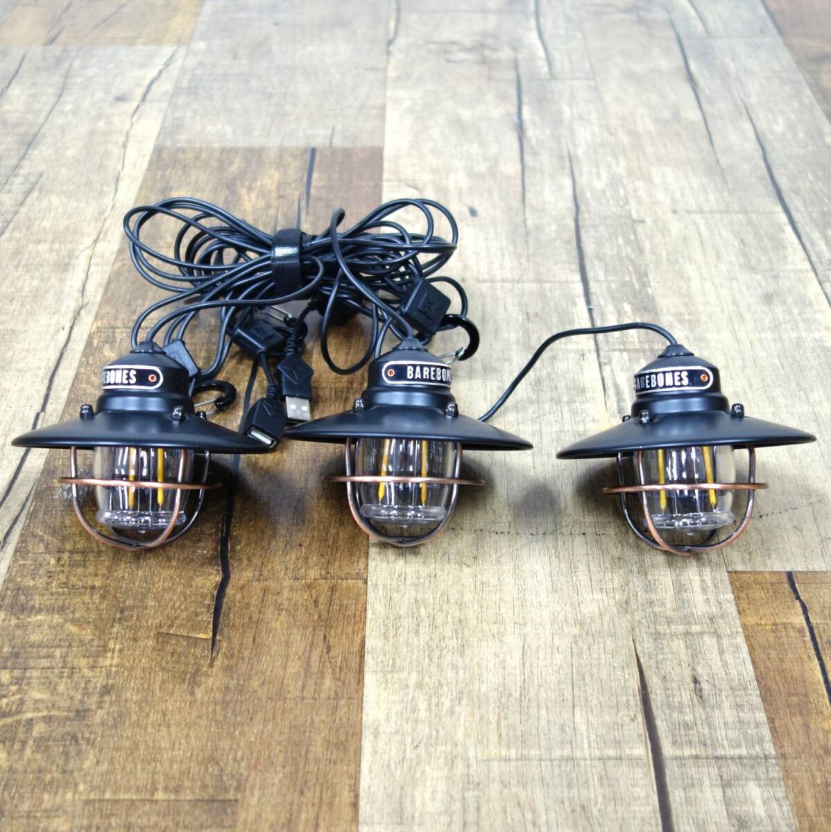 | 美品 ベアボーンズ BAREBONES エジソン ストリング ライト LED ブラック 3連 ランタン 照明 灯り キャンプ アウトドア |