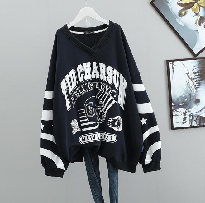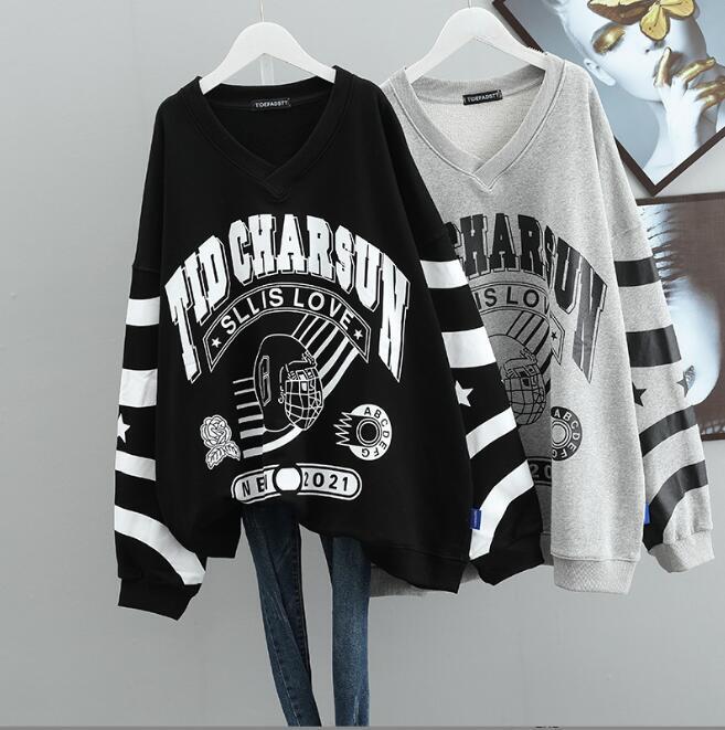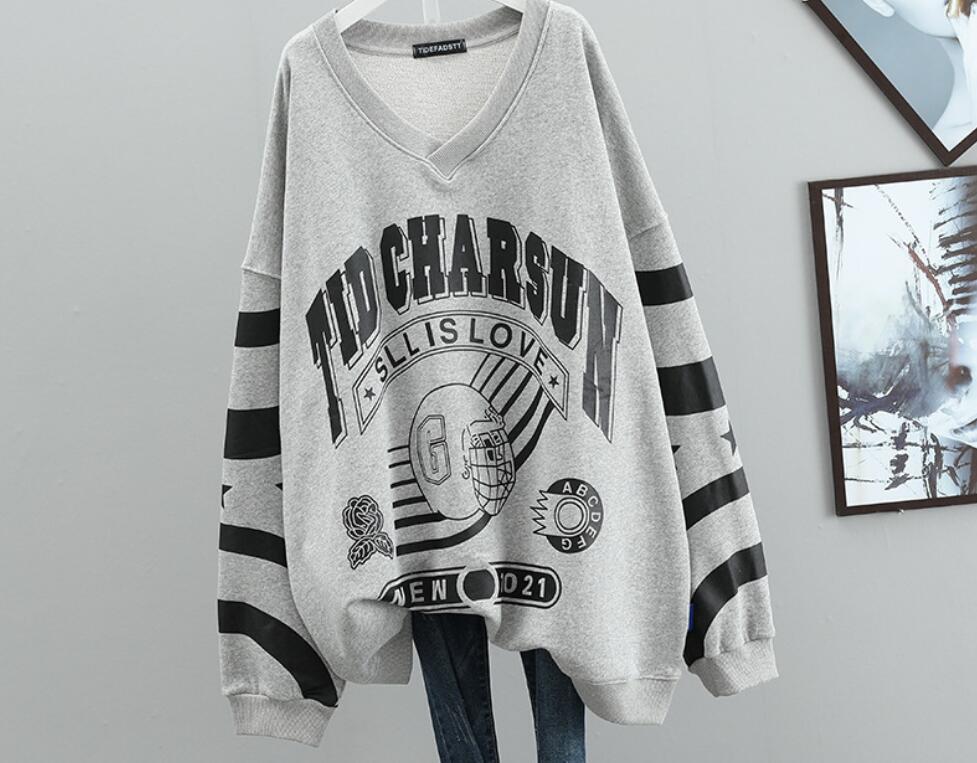 新入荷トレーナー レディース 大きいサイズ 春秋 秋服 春服 Vネック 長袖 プリント 薄手 トップス ゆったり 可愛い カジュアル(2色M-4XL)