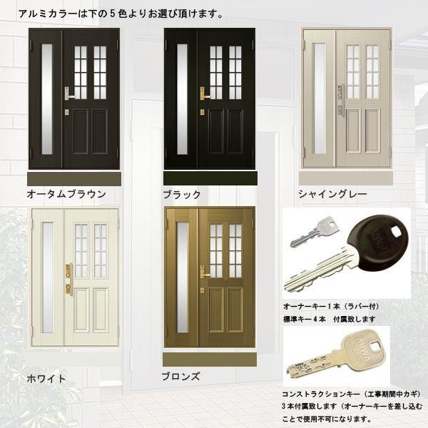 | 商品紹介 | ○ トステムのアルミサッシ 玄関ドア クリエラR 内付 親子 12型 ○ ドアクローザー標準装備 --------------------------- 【▼選択項目一覧】 ・商品色 ・吊元(商品は外開きです、外から見た際の吊元になります) ・ハンドルの種類 ・ガラスの種類 (型によっては選択可能です) --------------------------- * 枠・本体・ハンドル・部品のセットとなります。 * (鍵)キーを標準で5本付けております * 工事期間中のみ使える、工事用キーも3本付いております * 同時に複数セット、お買上げ頂けますと、送料の値引を致します。 違うサイズ(違う種類)との組合せでもOKです、是非お問合せ下さい。 |