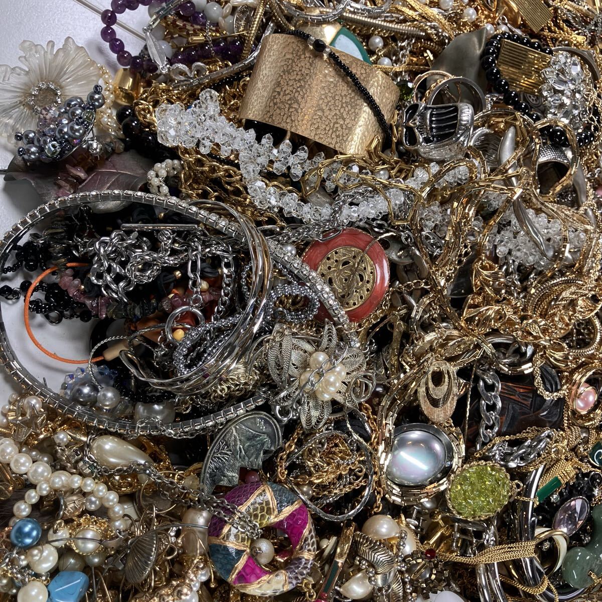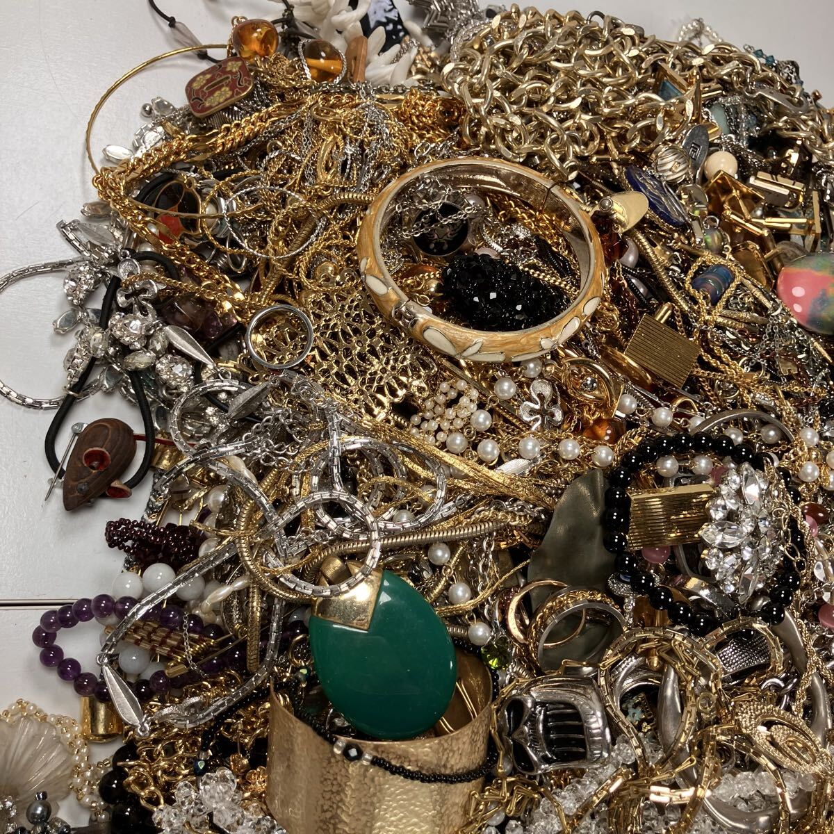 アクセサリー 約9.2kg ネックレス ブローチ タイピン カフス ピアス 1円スタート メッキ ジャンク まとめ 大量(Y265)