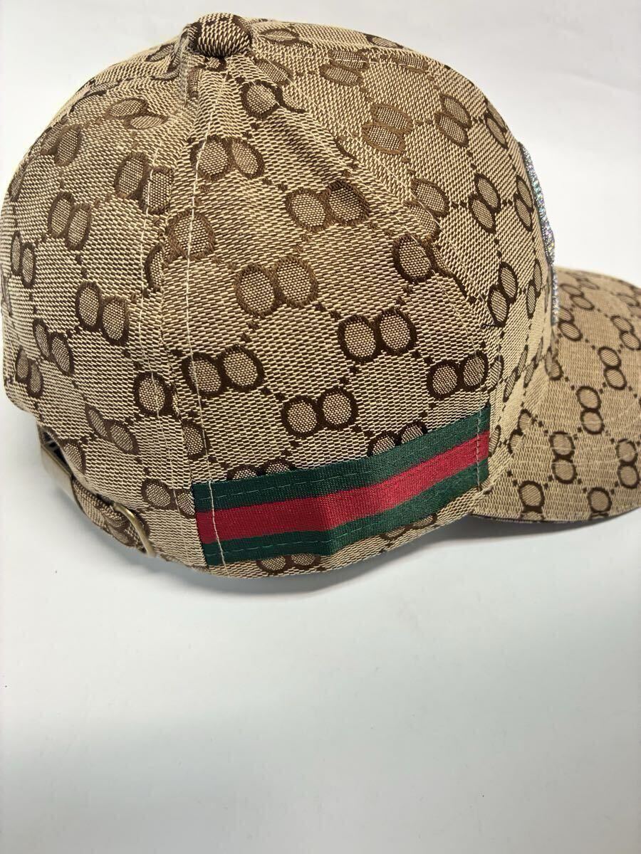 高級感漂う8モノグラムキャンバスとグリッターストーンのLAドジャースDロゴが映えるベルトキャップです。