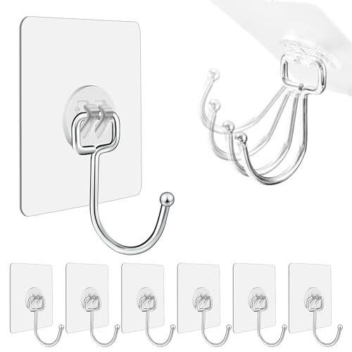 Giitoo 粘着強力フック 8cm×8cm 耐荷重25KG 壁掛け フック 透明フック ステンレス鋼 耐食性 錆びない (6, 透明)