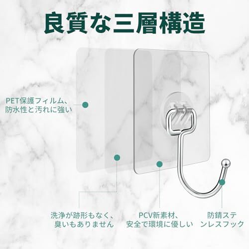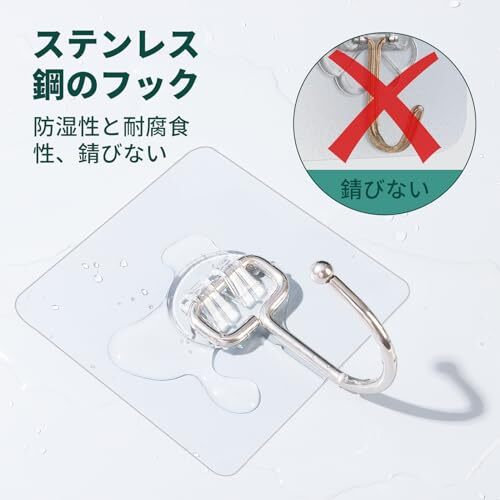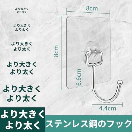 6 透明 Giitoo 粘着強力フック 8cm×8cm 耐荷重25KG 壁掛け フック 透明フック ステンレス鋼 耐食性 錆びない