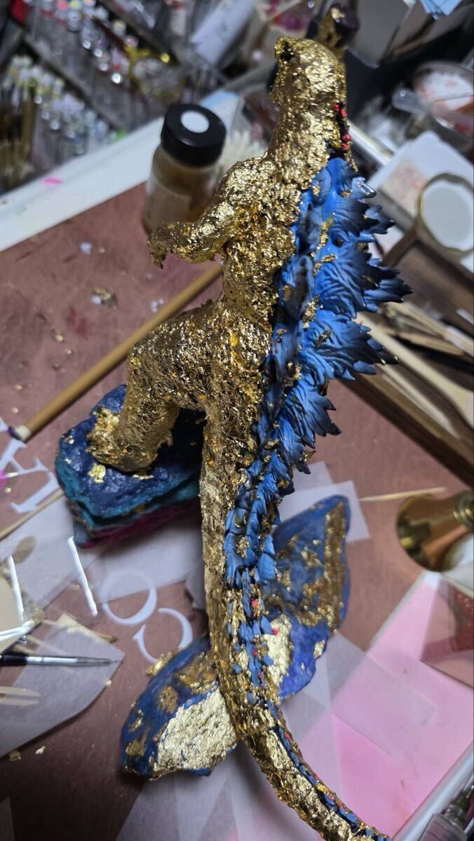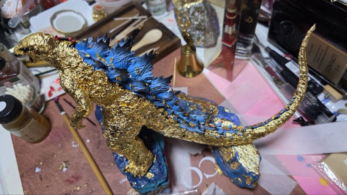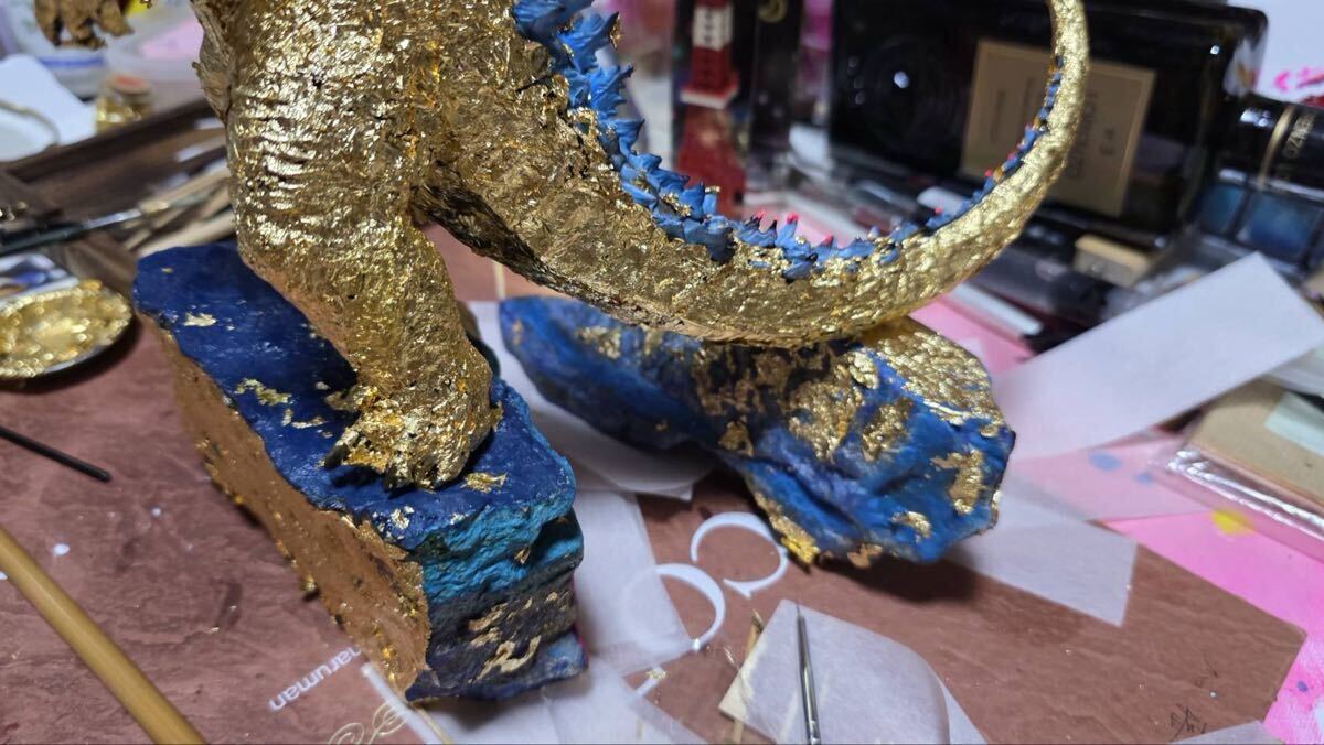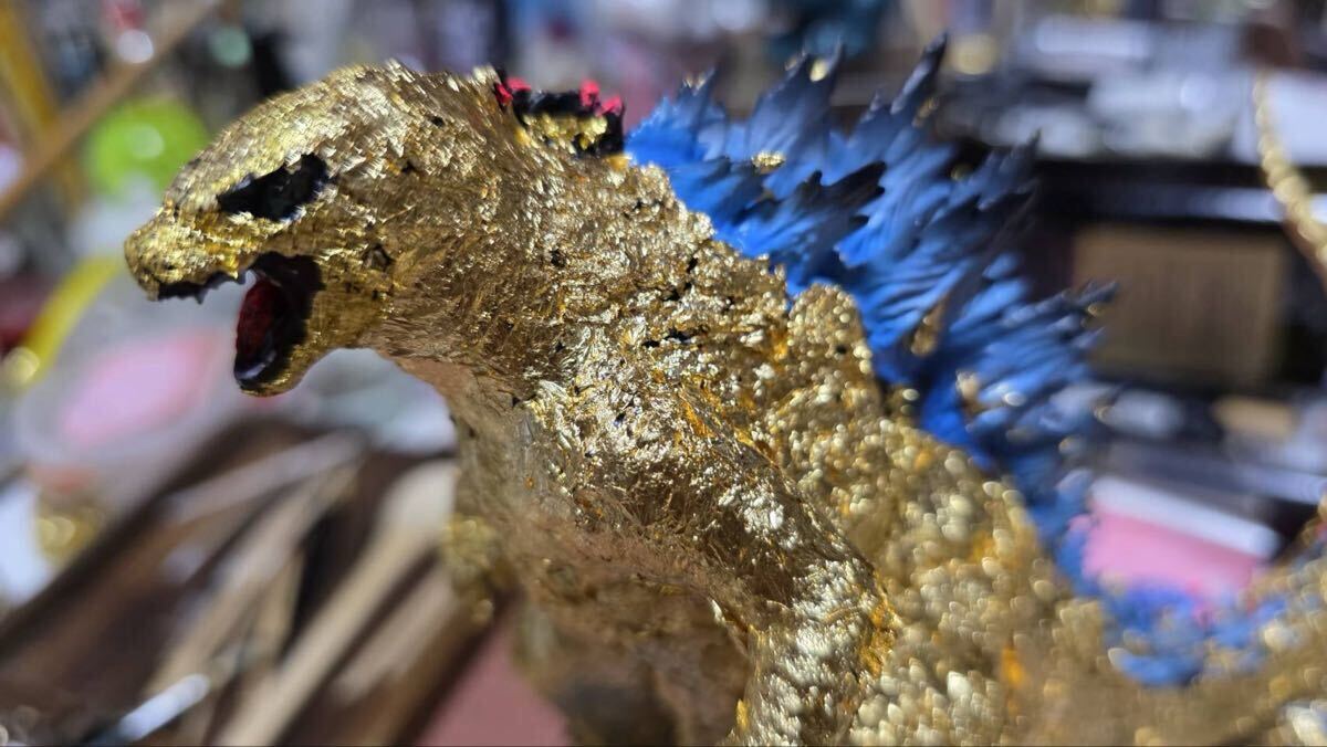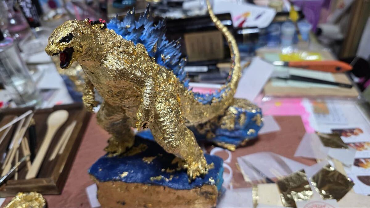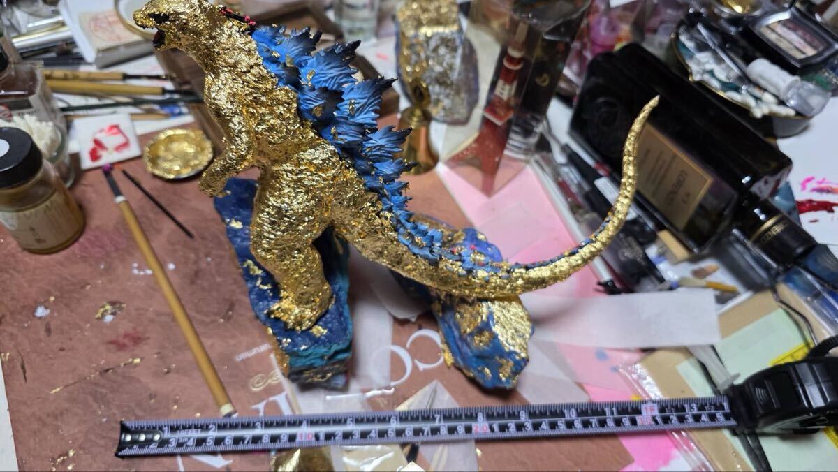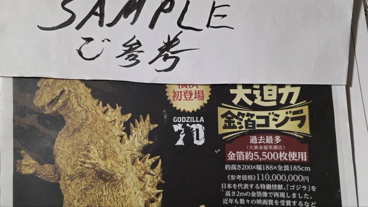高さ約2mで展示されていた「鎖ゴジラ(金箔像)」作品(参考価格:約1.1億円)に着想を得て、