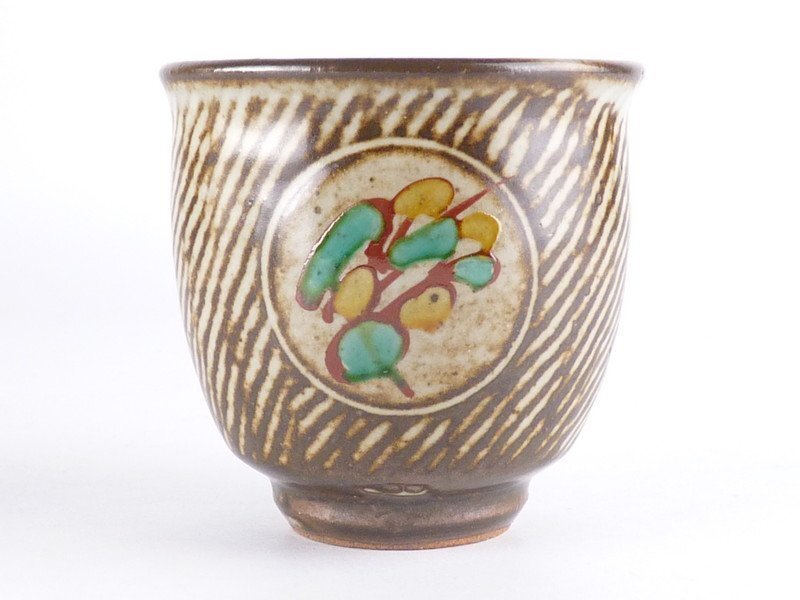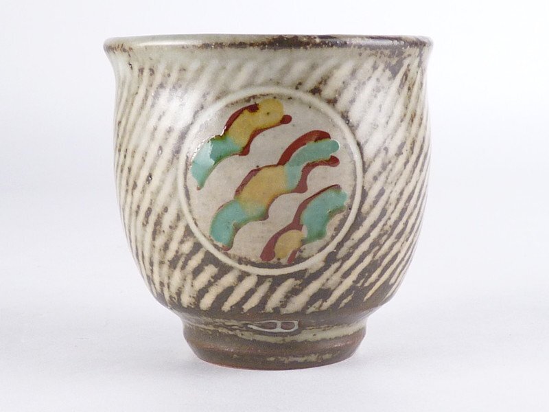 人間国宝 島岡達三「象嵌赤絵 湯呑」共箱