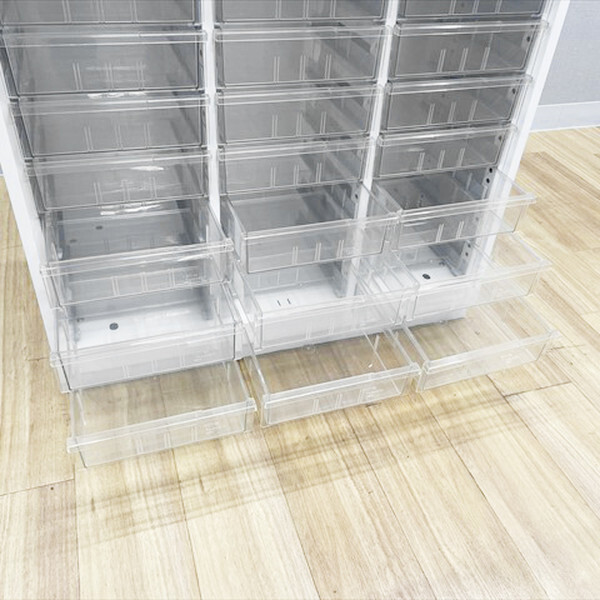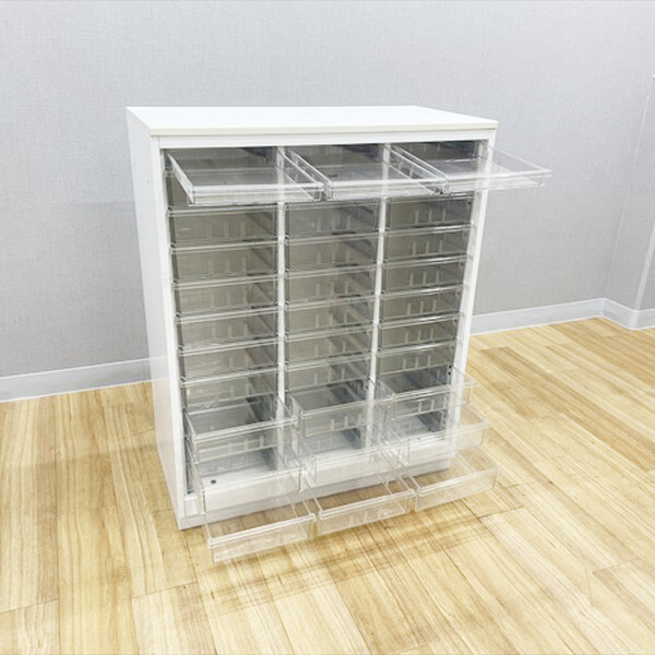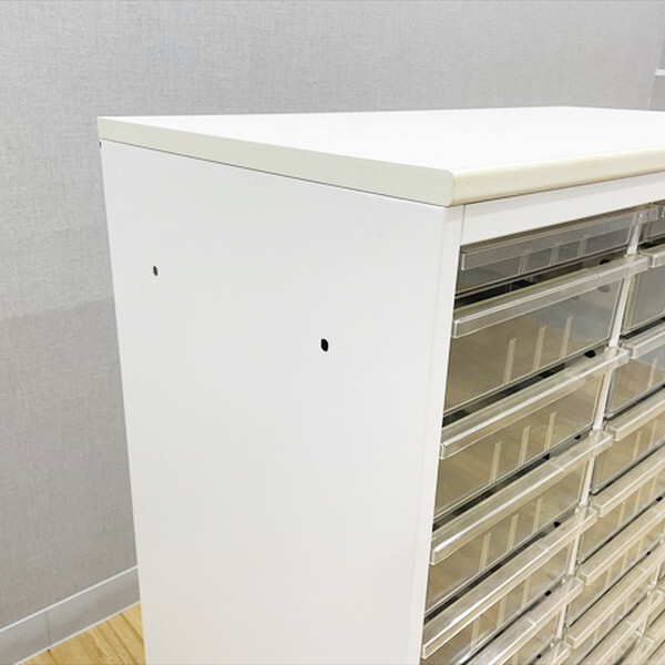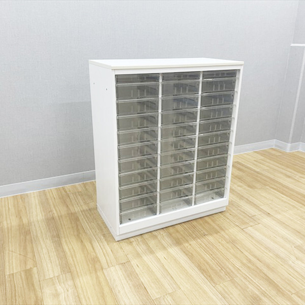 ■取り扱い番号 CT-877997B ■仕様 メーカー : イトーキ 製品名 : THIN LINE シンライン 色素材 : ホワイトW 外寸 : 幅900mm 奥行き455mm 高さ1120mm ランク : Bランク ■特徴 ベース付 トレイ:浅型3枚 深型30枚 計33枚 A4サイズの書類を大量にしかも効率よく保管・分類できます。文房具等の小物の保管収納などにも便利です。 |
