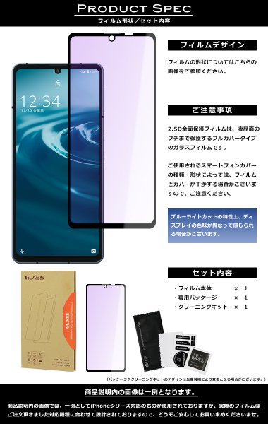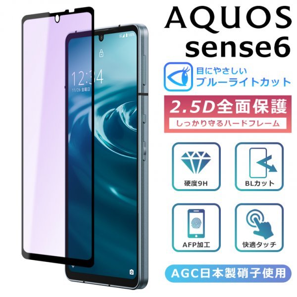 <ブルーライトカット>AQUOS sense6 フィルム 全面保護 2.5D 強化ガラスフィルム AQUOS sense6s SHG07 SH-54B SHG05 SH-RM19 SH-M19